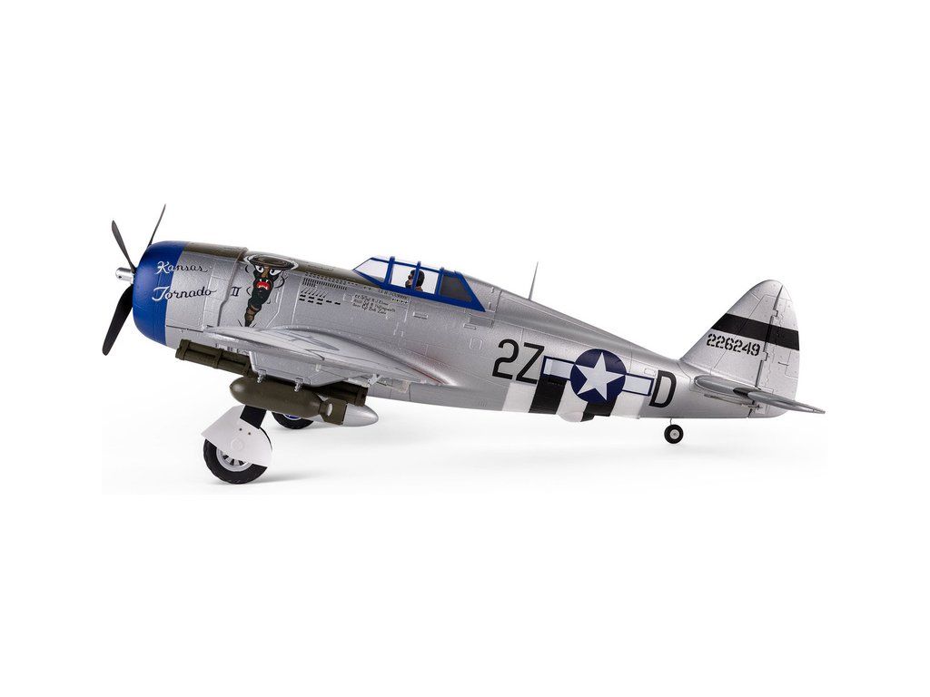 RC model na dálkové ovládání P-47 Razorback o rozpětí 1,2 m s přijímačem,servy, zatahovacím podvozkem, vztlakovými klapkami a střídavým pohonem pro středně pokročilé piloty. Řada maketových prvků, napájení 3S - 4S LiPol. Verze BNF bez vysílače a baterie.