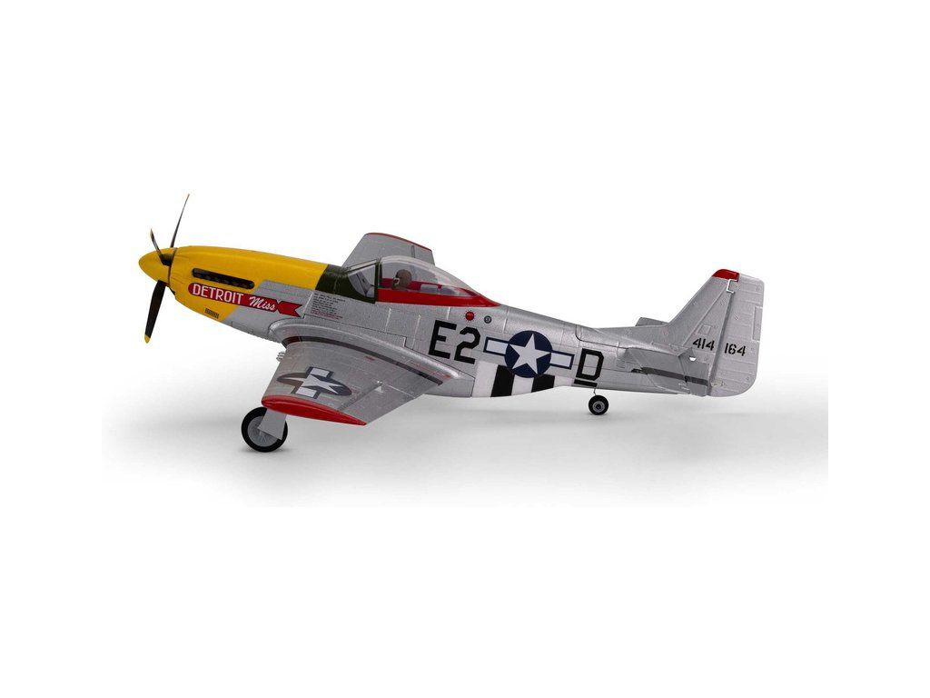RC model mikro letadla na dálkové ovládání, známý P-51D Mustang v markingu “Detroit Miss” o rozpětí 493mm. Verze BNF s elektronikou AS3X a Safe Select. Střídavý motor na 2S - 3S Lipol baterii. Hotový smontovaný a nabarvený model je připraven ke spárování s vaším vysílačem Spektrum.