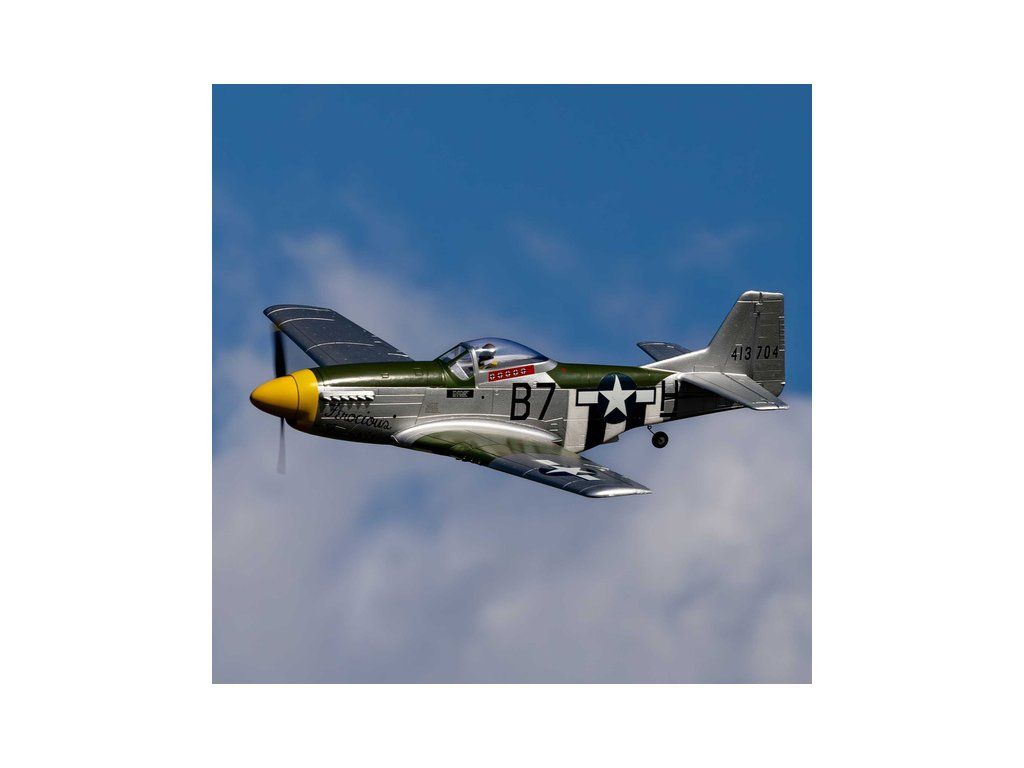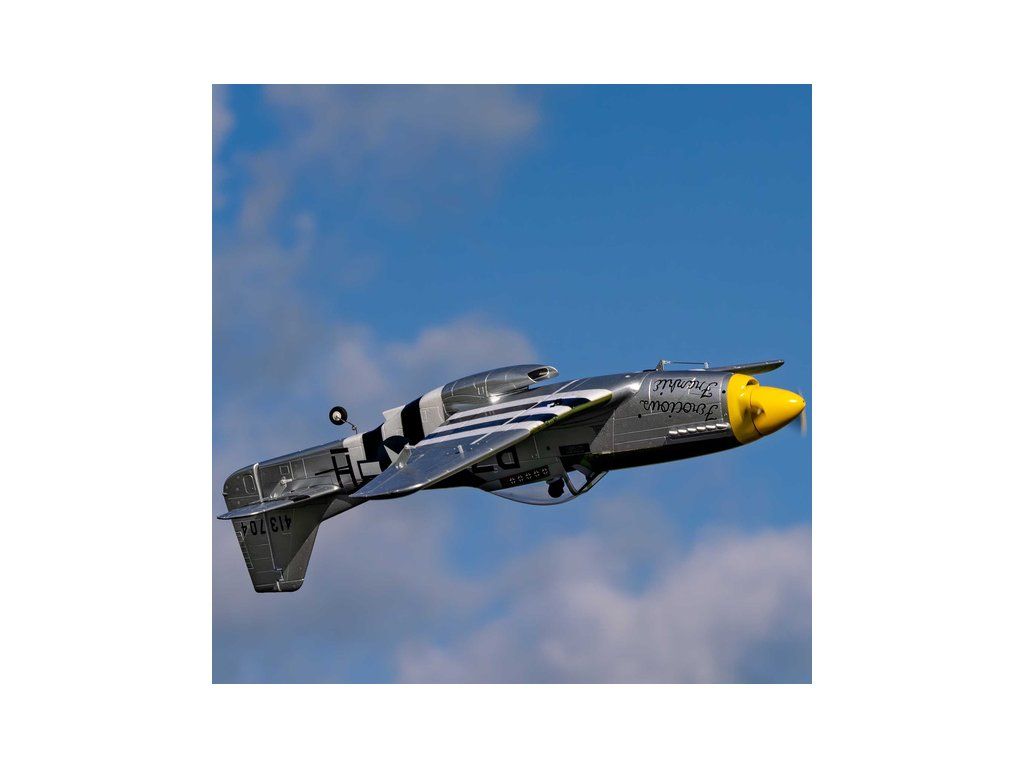 RC model americké stíhačky P-51D Mustang o rozpětí 1,0m se střídavým pohonem pro 3-4S LiPo. Lehká pěnová konstrukce EPO s kamufláží “Ferocious Frankie”. Jedná se o jednoduší a dostupnější model s pevným podvozkem. Verze PNP - doplníte vlastní RC soupravu.