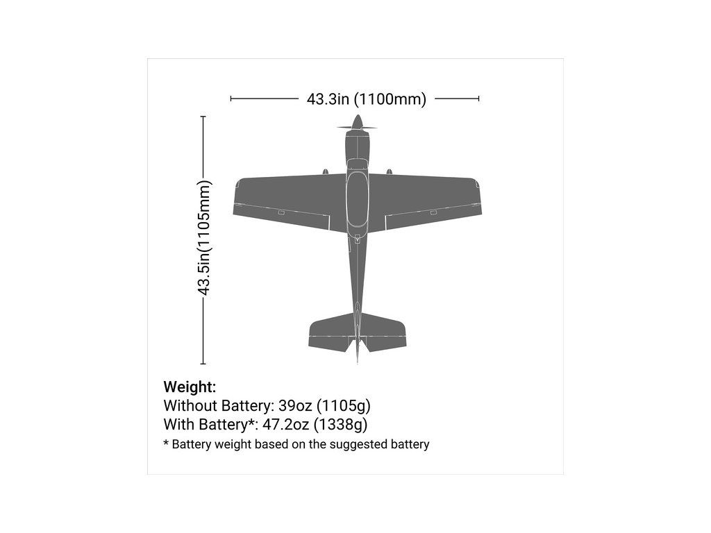 - Pro delší lety LiPo akumulátor Spektrum Smart 11.1V 3200mAh 30C IC3 s technologií Smart, nebo LiPo akumulátor Spektrum Smart G2 11.1V 3200mAh 30C IC3 s technologií Smart G2