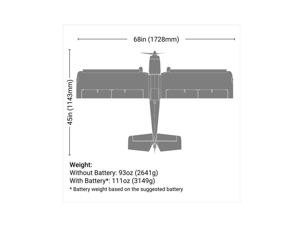 I když je model kompletně vybaven pro provoz, budete potřebovat 7+ kanálový vysílač Spektrum DSMX®/DSM2®, LiPol baterii 4S 14.8V - 6S 22.2V 3200–5000mAh s konektorem IC5 nebo EC5 a kompatibilní nabíječ.