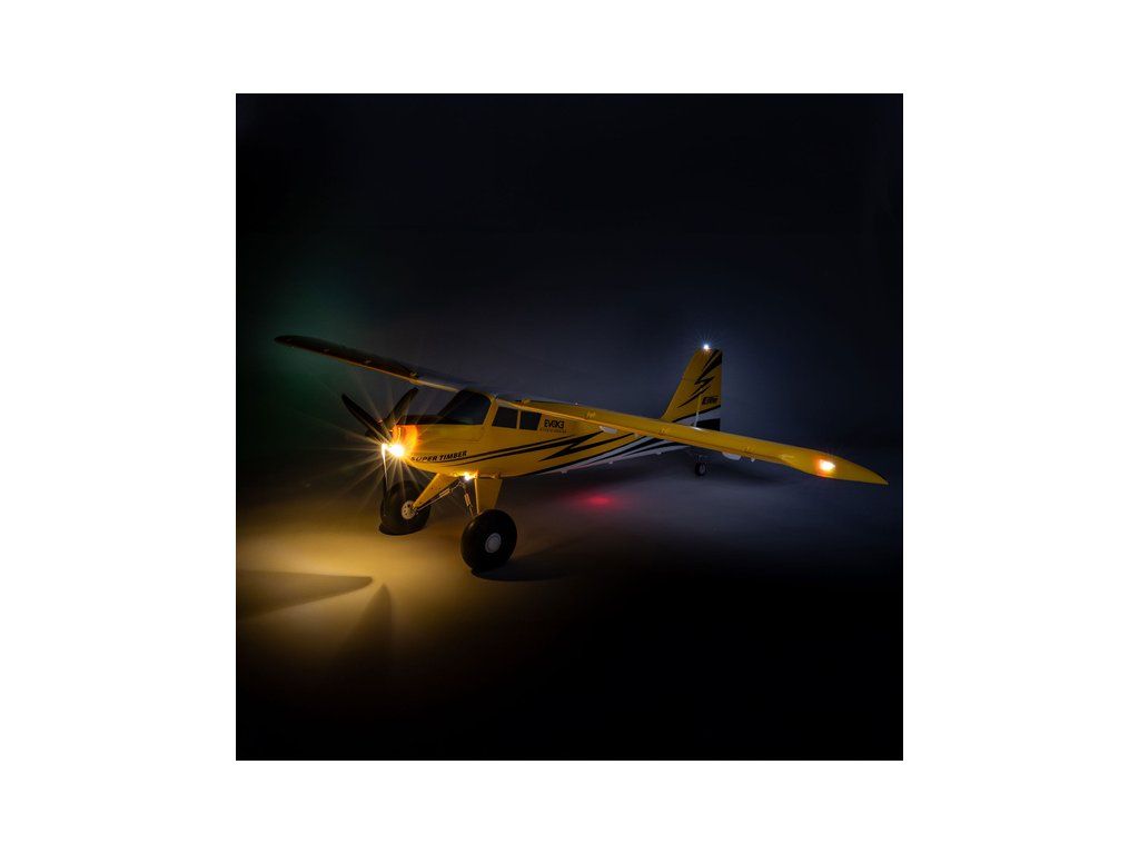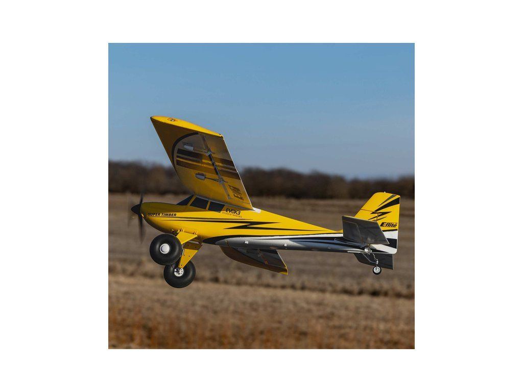 RC model letadla E-flite Super Timber o rozpětí křídla 1.7m, ve verzi BNF Basic. Je vybaven LED osvětlením a výkonným střídavý pohonem pro 4S-6S LiPol baterie, elektronikou s telemetrií a funkcí AS3X a volitelným SAFE pro snadné létaní. Odolný podvozek s nafukovacími pneumatikami a odpružený podvozek. Montáž bez šroubů, Hands-free připojení.