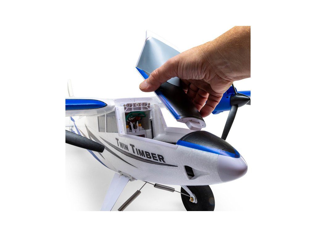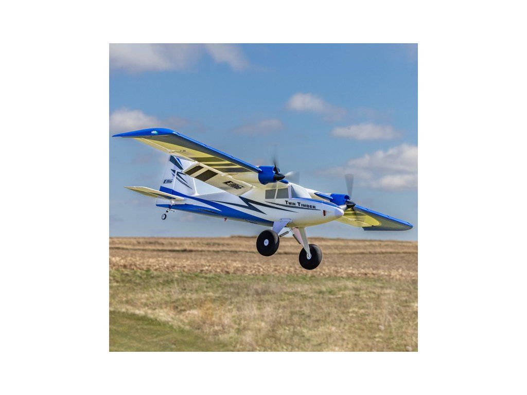 RC model dvoumotorového letadla E-flite Twin Timber PNP o rozpětí 1,6 m. Model má výborné akrobatické schopnosti, vztlakové klapky a volitelné sloty pro krátký vzlet a přistání. Verze PNP bez přijímače. Pro 3-4 čl. LiPol baterie.