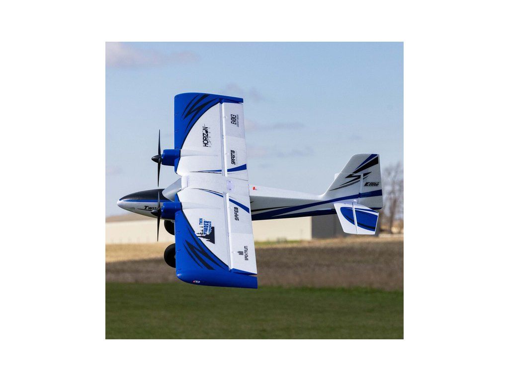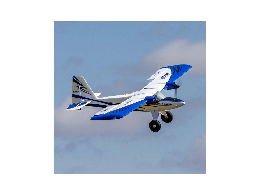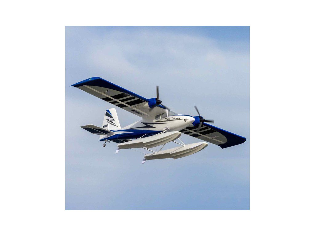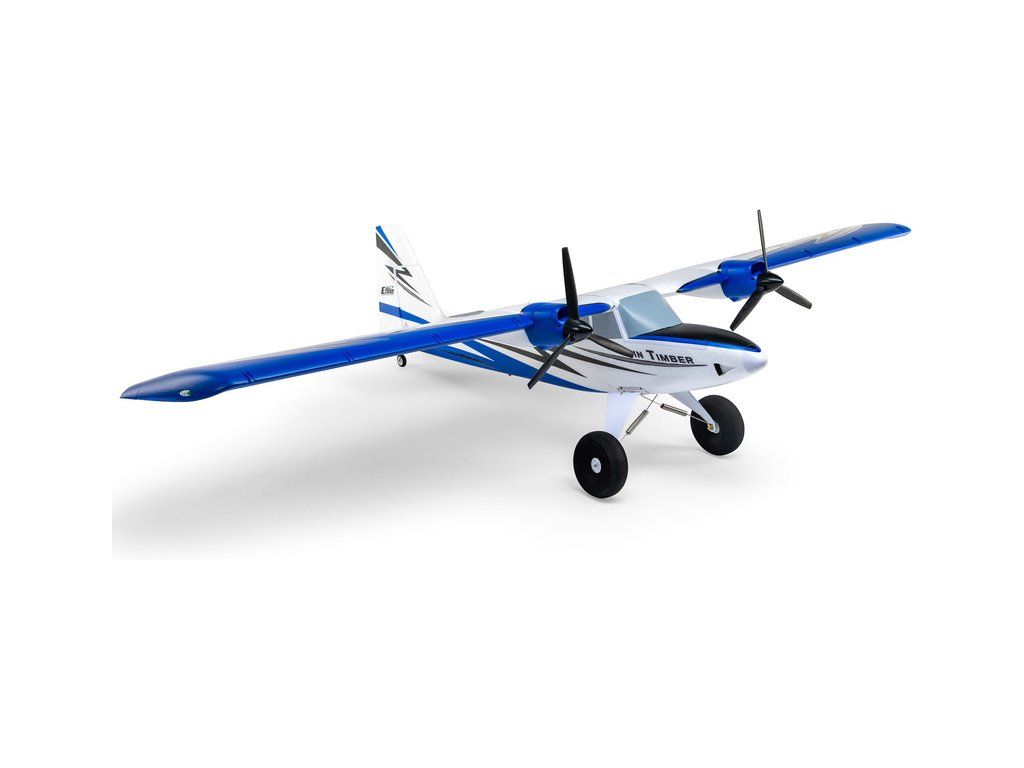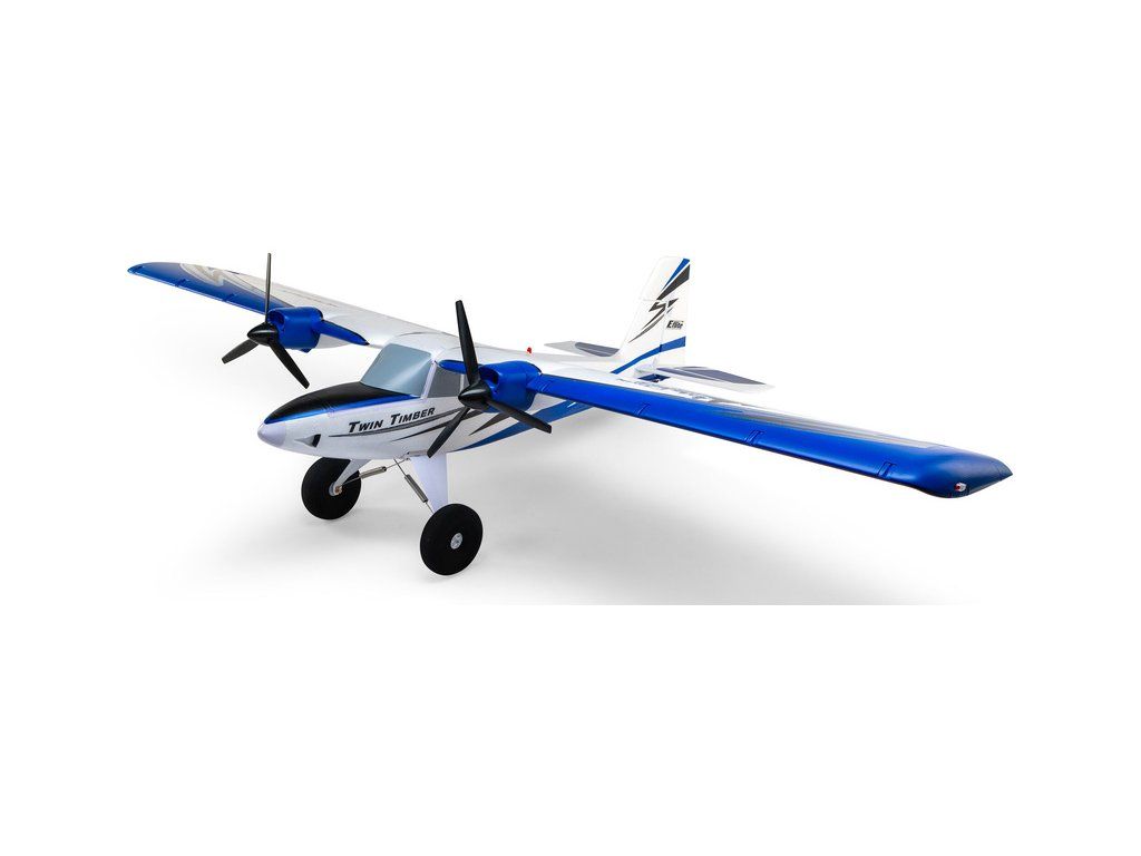 RC model dvoumotorového letadla E-flite Twin Timber BNF Basic o rozpětí 1,6 m, Model má výborné akrobatické schopnosti, vztlakové klapky a volitelné sloty pro krátký vzlet a přistání, stabilizace SAFE Select. Pro 3-4 čl. LiPol baterie.