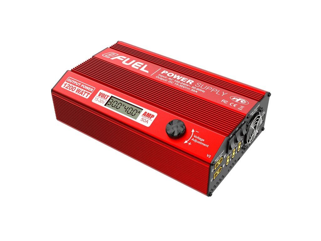 Vysokovýkonný – a přitom lehký, kompaktní, v odolném hliníkovém pouzdře – stabilizovaný síťový zdroj eFUEL 50A je ideální pro napájení modelářských nabíječů a dalších zařízení vyžadujících napájení 15-30 V stejnosměrných.