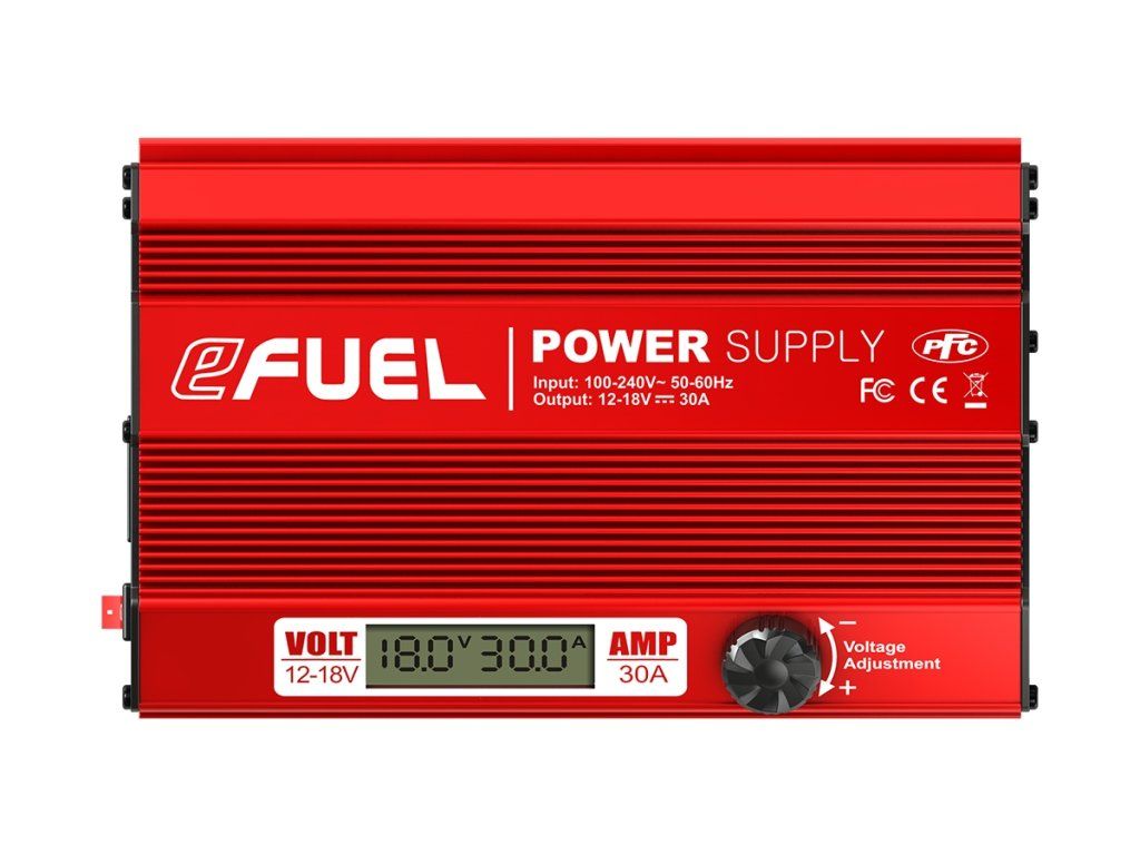 Malý, lehký, kompaktní, v odolném hliníkovém pouzdře – stabilizovaný síťový zdroj eFUEL 30A je ideální pro napájení modelářských nabíječů a dalších zařízení vyžadujících napájení 12-18 V stejnosměrných.