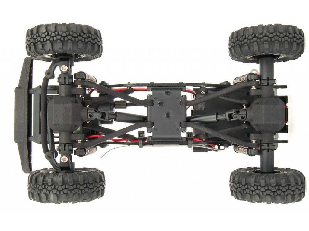 Tento malý CRAWLER podvozek s pohonem všech kol je vybaven mnoha funkcemi, které se nacházejí normálně v mnoho větších modelech. Podvozek s pohonem všech kol a se středovou převodovkou, kovovým rámem podvozku a odpružením se čtyřmi tlumiči zajišťuje, že lezení přes překážky bude hračka.