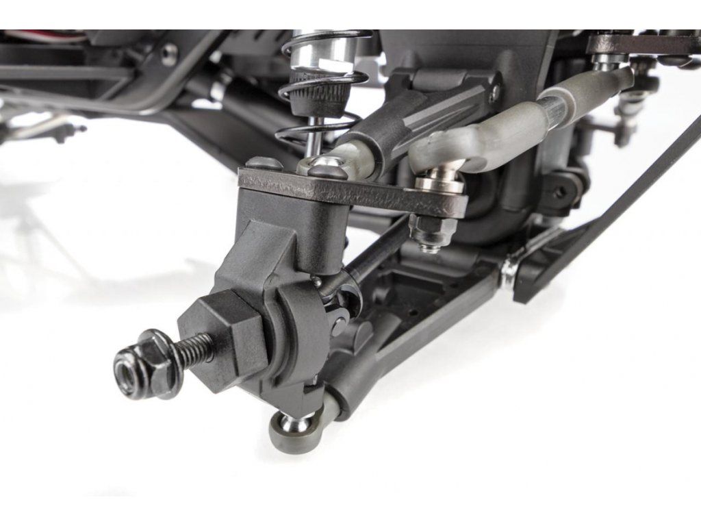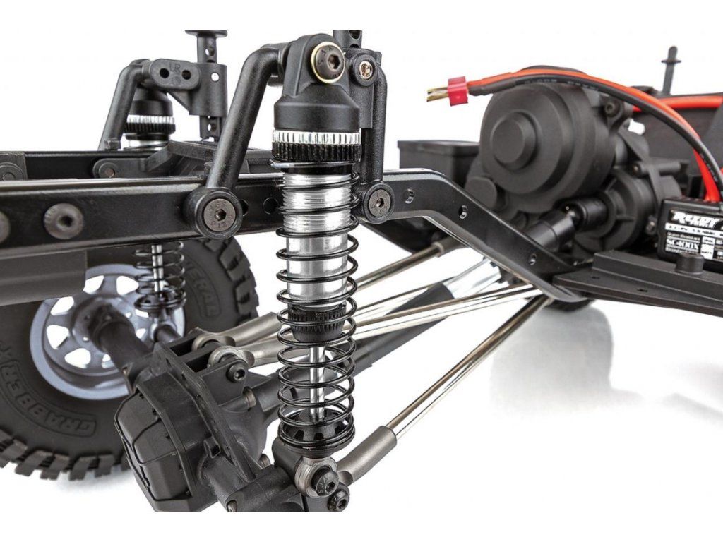 - Zavěšení: Vnitřní tlumiče jsou opatřeny tlumiči, které jsou schopny zajistit stabilitu a odolnost proti poškození: Odolná vstřikovaná horní a dolní ramena zavěšení s optimalizovanými kulovými čepy zajišťují maximální kloubovost zavěšení spolu s moderním vzhledem měřítka zavěšení terénního vozidla.