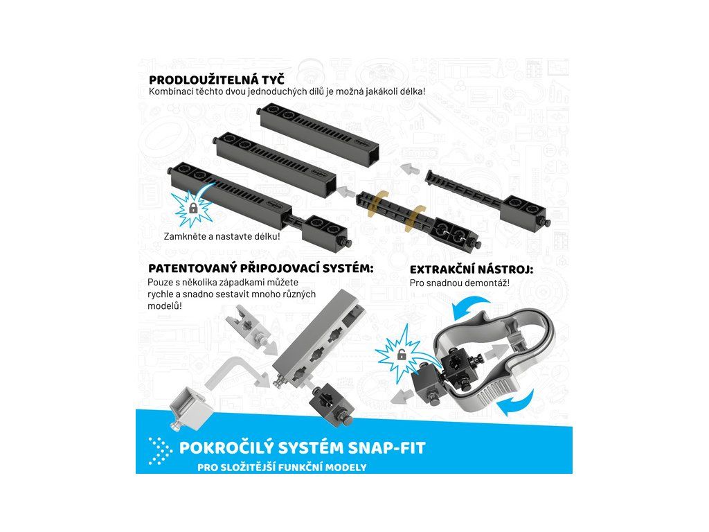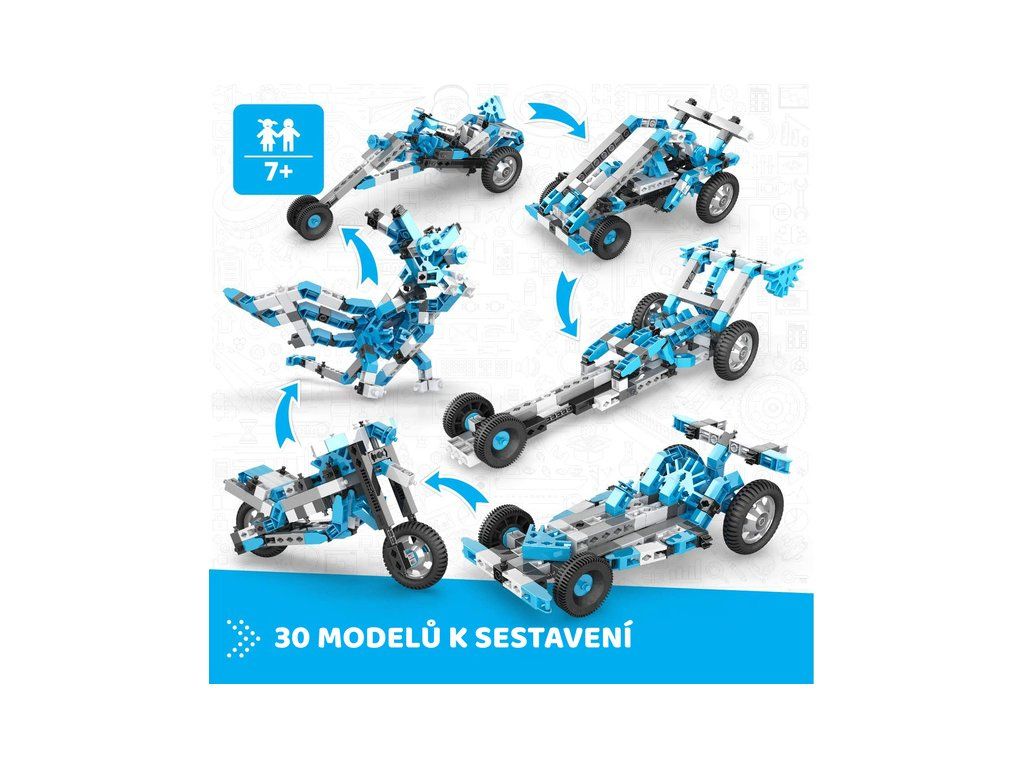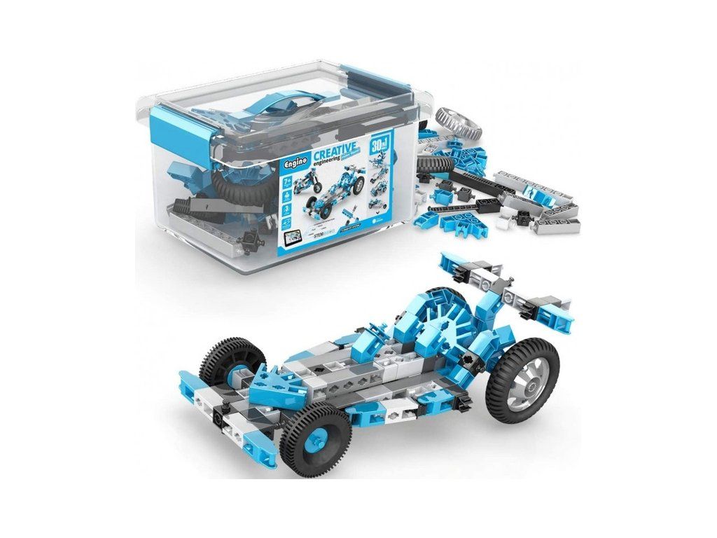 Engino Creative Engineering 30 modelů Master je stavebnice pro děti od 7 let, která obsahuje 210 dílů a sestavíte si z nich 30 úžasných hraček jako vesmírnou raketu, lunární vozík, zimní skútr, formuli, motorku a mnoho dalších.