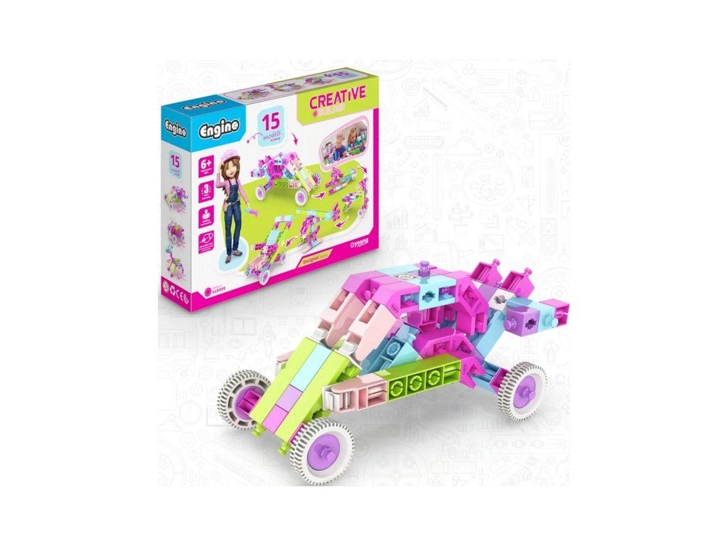 Stavebnice Engino Creative Builder Designer 15 modelů, určená pro dívky, která je inspiruje ke kreativnímu hraní a zábavnou formou budou objevovat úžasný svět vědy, techniky a inženýrství. Sestavte 15 unikátních modelů pomocí návodu. Počet dílů v balení: 74. Věk 6-12 let.