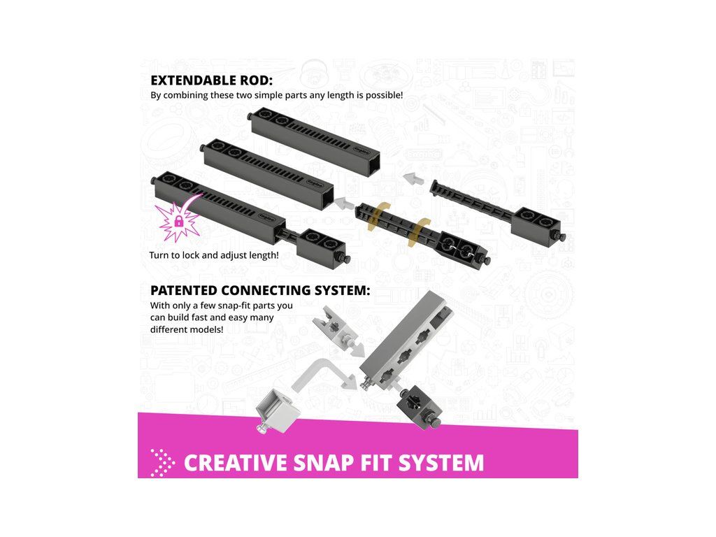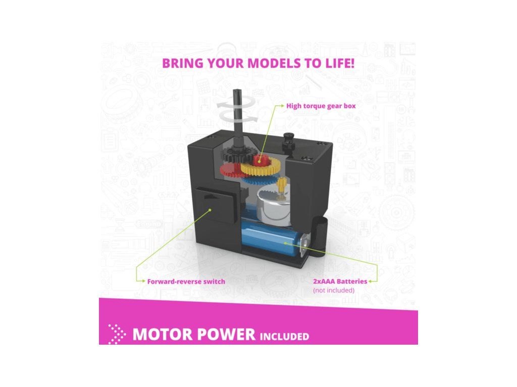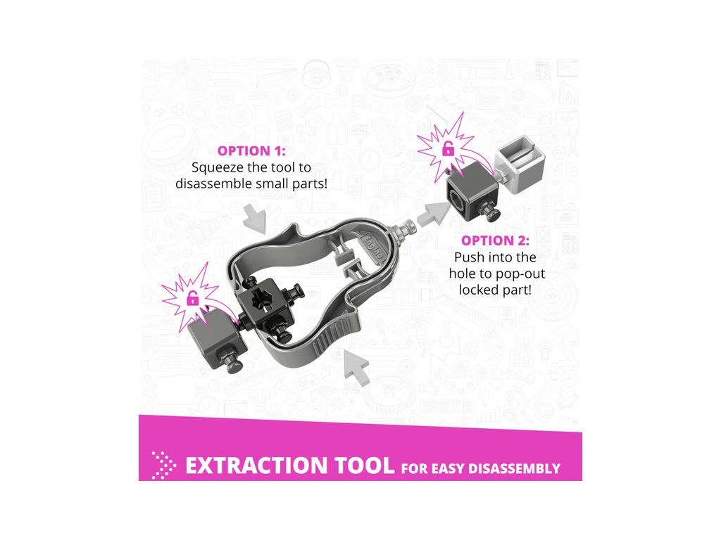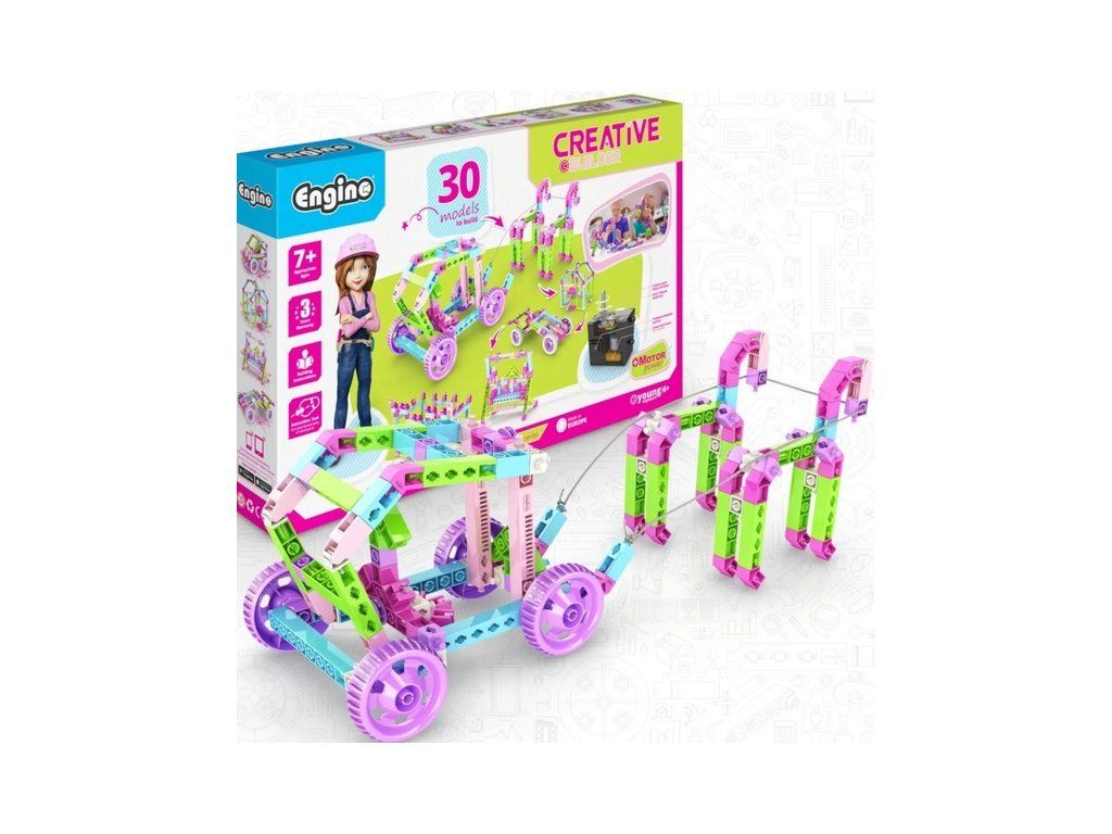 Stavebnice Engino Creative Builder Designer 30 modelů + motor, určená pro dívky, která je inspiruje ke kreativnímu hraní a zábavnou formou budou objevovat úžasný svět vědy, techniky a inženýrství. Sestavte 15 unikátních modelů a rozpohybujte je pomocí obsaženého elektromotoru. Věk 6+.