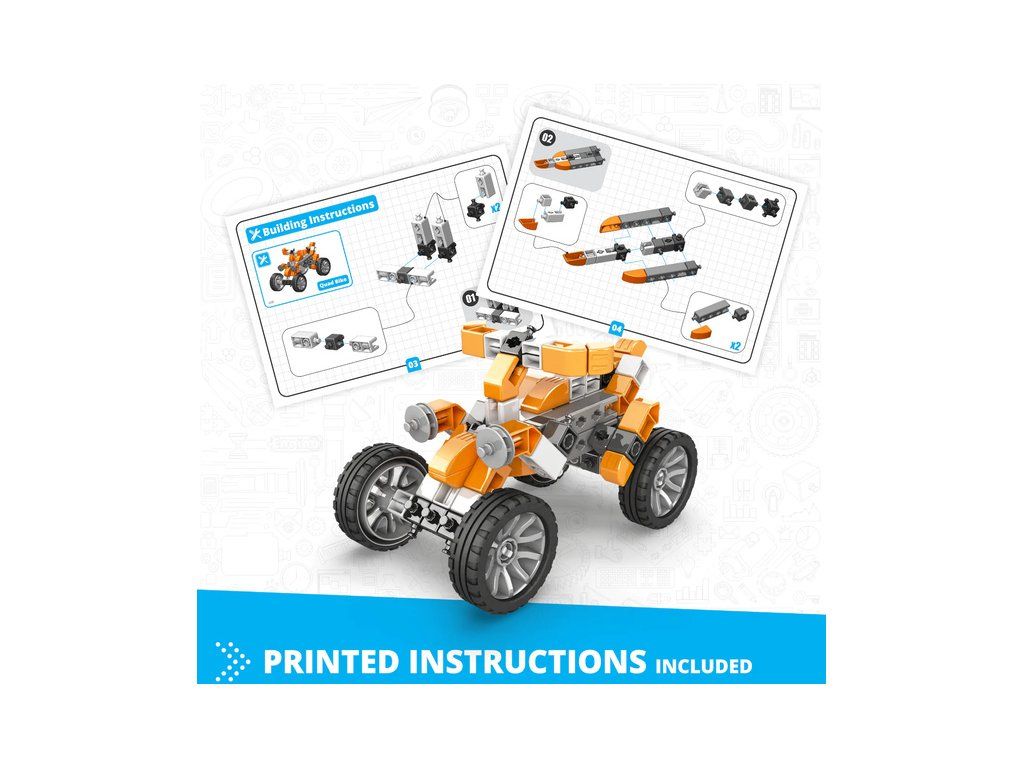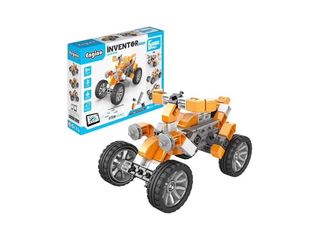 Stavebnice pro děti od 9 let, Engino Inventor Mechanics čtyřkolka, sestavit lze 5 různých modelů motorek čtyřkolek. Jednoduchá kreativní stavebnice pro děti, s možností využít stávající díly k dalším stavebnicím Engino. Obrázkový přehledný barevný návod.