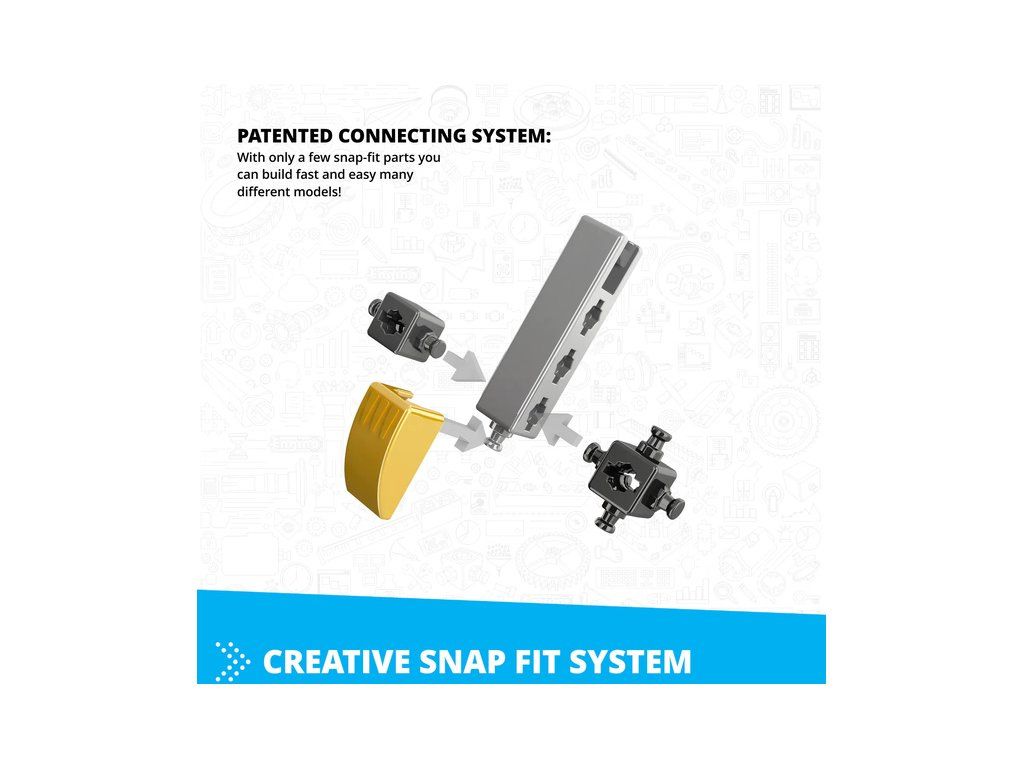 Stavebnice pro děti od 9 let, Engino Inventor Mechanics sklápěč, sestavit lze 5 různých modelů, jako stavební stroje, vrtulník, závodní auto a další. Jednoduchá kreativní stavebnice pro děti, s možností využít stávající díly k dalším stavebnicím Engino. Obrázkový přehledný barevný návod.