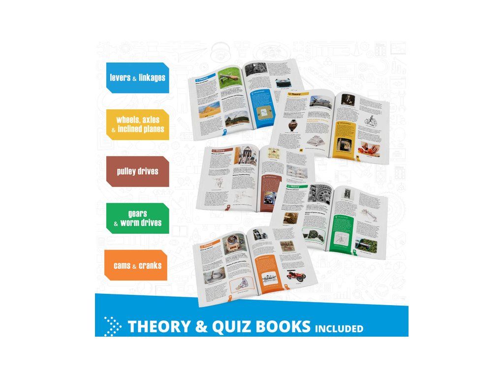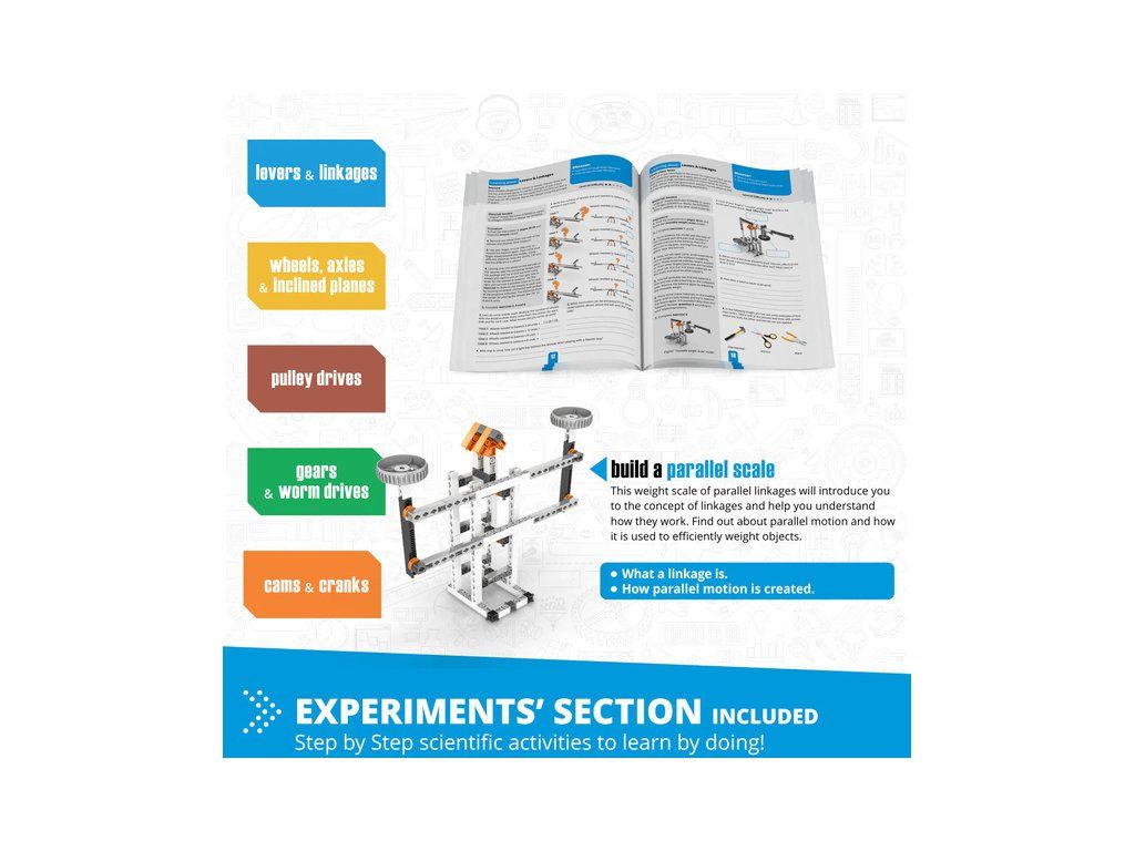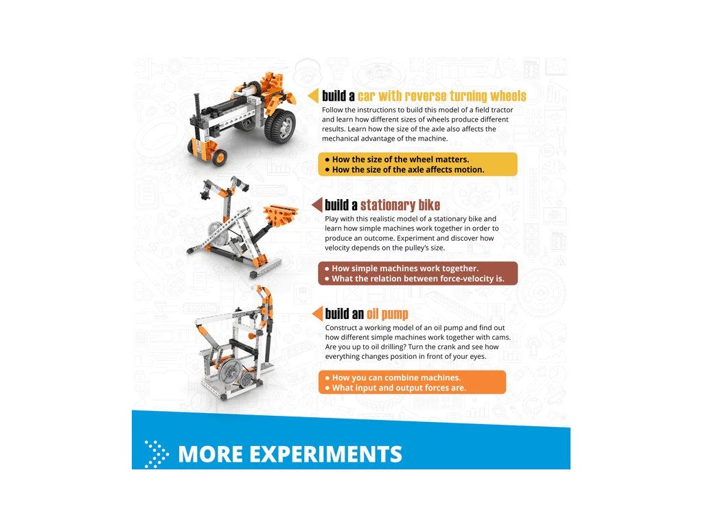 Zábavné a praktické výukové stavebnice Engino Stem Jednoduché stroje mechanismy zjednodušující sílu, obsahuje základních 5 sad řady „Discovering STEM“. Postavte si 60 pracovních modelů, které pokrývají témata pák, klínu, kola a nápravy, šroubu, nakloněné roviny, řemenice a také pokročilejších převodů a pák!