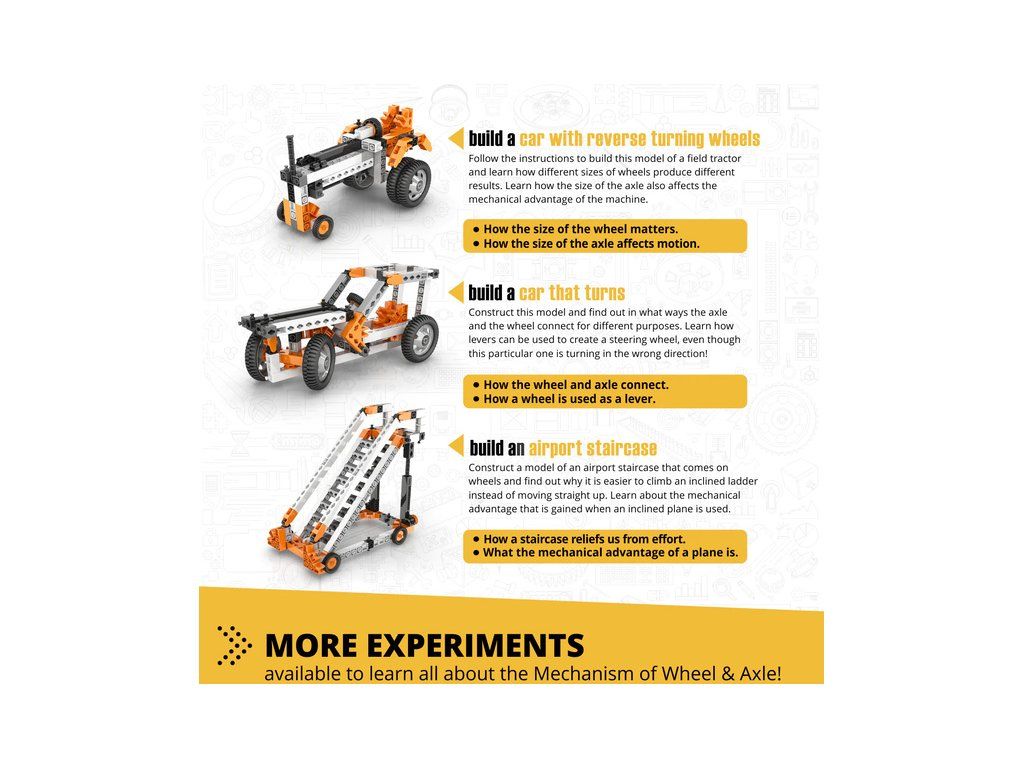 Zábavné a praktické výukové stavebnice Engino Stem Mechanics kola, nápravy a nakloněné roviny, umožní lépe pochopit základní principy fyzikálních procesů. Dítě si může osahat a vlastnoručně postavit model, který mu ukáže, jak vlastně funguje. Pro předškoláky i školáky.