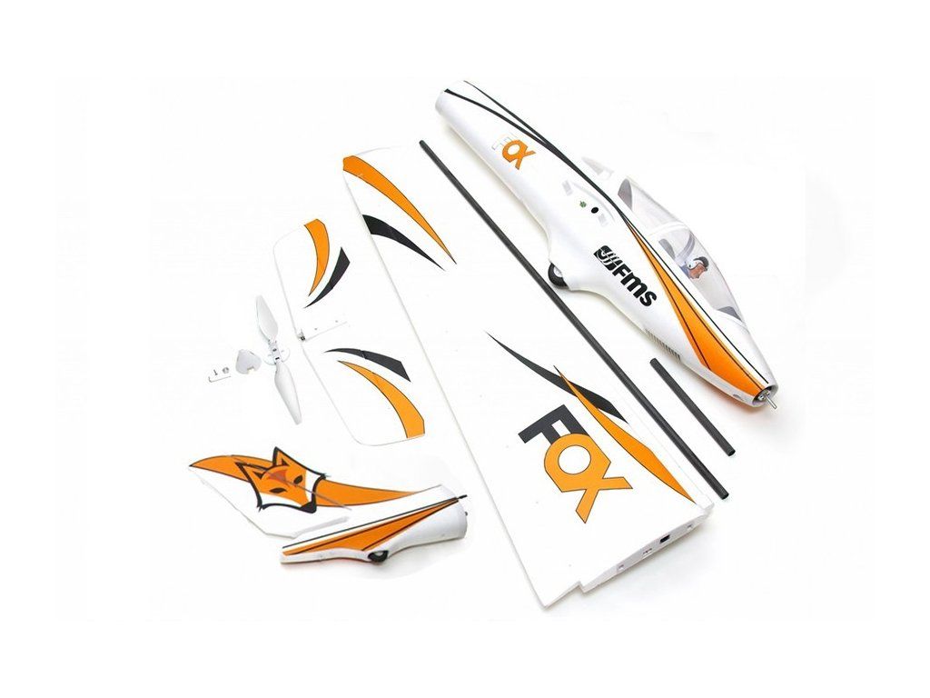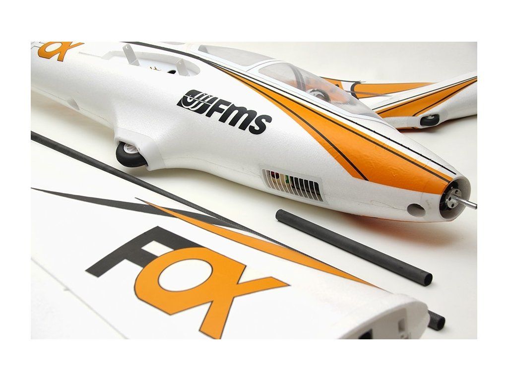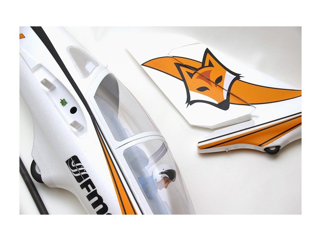 Trup modelu z pěnového EPO je dodáván s namontovaným střídavým motorem s rotačním pláštěm (C4258-KV460), sklopnou vrtulí 15x7,5“, s osazeným 70A střídavým regulátorem a servy směrovky a výškovky. Ve přední části trupu pod rozměrným odnímatelným krytem kabiny se nachází prostor pro akumulátory a palubní elektroniku. Pro FOXe budete potřebovat Li-poly šestičlánky 5000 mAh se zatížitelností 35C. Směrovka je ovládána servem uloženým v kýlovce; výškovka servem uloženým ve vodorovném stabilizátoru. Celá ocasní část trupu je pro snadnou přepravu a skladování odnímatelná - upevňuje se k přední části trupu pomocí trubkové spojky a bajonetové západky. Křídlo rovněž z pěnového EPO je dvoudílné, nasouvané z boku na trubkovou uhlíkovou spojku. Křidélka a klapky jsou ovládány vždy dvěma servy uloženými v křídle. Přistávací zařízení tvoří jednostopý podvozek s napůl zapuštěným hlavním kolem a malým ostruhovým kolečkem. Ovládána jsou křidélka, klapky, směrovka, výškovka a otáčky motoru.