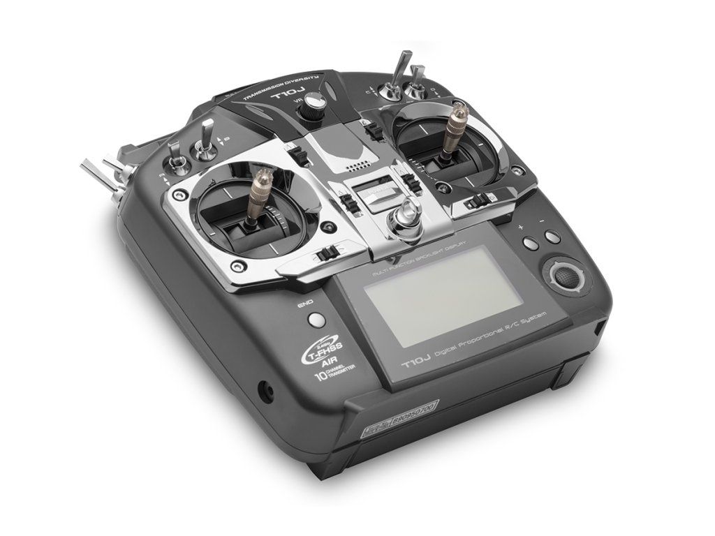Vysílač T10J ve skříňce dokonale padnoucí do ruky je vybaven přesnými křížovými ovladači s nastavitelnou aretací/neutralizací, 8 přepínači, 6 digitálními trimy a otočným proporcionálním ovladačem. K programování slouží trojice tlačítek a víceúčelový joystick; snadnou orientaci v intuitivním menu zajišťuje velký podsvícený LCD displej. T10J má paměť pro 30 modelů a širokou škálu mixových funkcí pro akrobatická letadla, větroně, vrtulníky a multikoptéry. Kromě zobrazení telemetrických dat na displeji je k dispozici hlasový výstup telemetrie v zásuvce pro sluchátko (není součástí soupravy). T10J je rovněž vybaven zásuvkou učitel-žák a umožňuje rovněž programovat a nastavovat S.BUS serva.