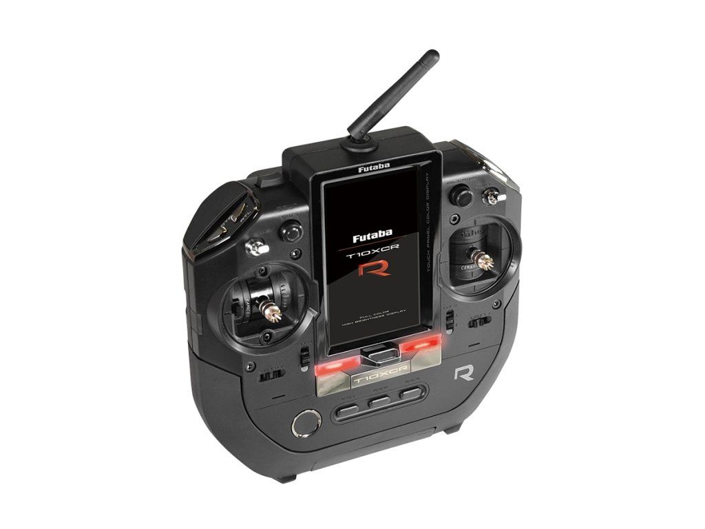 Vysílač T10XCR v klasickém designu dokonale padnoucím do rukou je vybaven pákovými ovladači řízení a plynu, spouští pro ovládání plynu, dvěma páčkovými přepínači, jedním kolébkovým 3polohovým přepínačem, čtyřmi tlačítkovými přepínači, jedním otočným ovladačem/tlačítkem a šesti digitálními trimy. K programování slouží čtveřice tlačítek a velký podsvícený barevný dotykový LCD displej zajišťující snadnou orientaci v intuitivním menu. T10XCR má paměť pro 40 modelů neomezeně rozšiřitelnou pomocí mikroSD karty a širokou škálu pokročilých programových funkcí (shodných s volantovým vysílačem Futaba T10 PXR) pro běžné i speciální modely aut - např. nezávislé řízení a pohon (se 2 regulátory) předních i zadních kol pro crawlery, dvojokruhové brzdy pro velké modely 1:5, gyro pro drifting, ABS, kontrola trakce, mix pro tanky apod. Můžete přepínat až 4 jízdní režimy s odlišným nastavením mnoha programových funkcí zaručující ideální přizpůsobení nastavení auta podmínkám na různých místech závodní trati nebo měnícím se povětrnostním podmínkám atd.