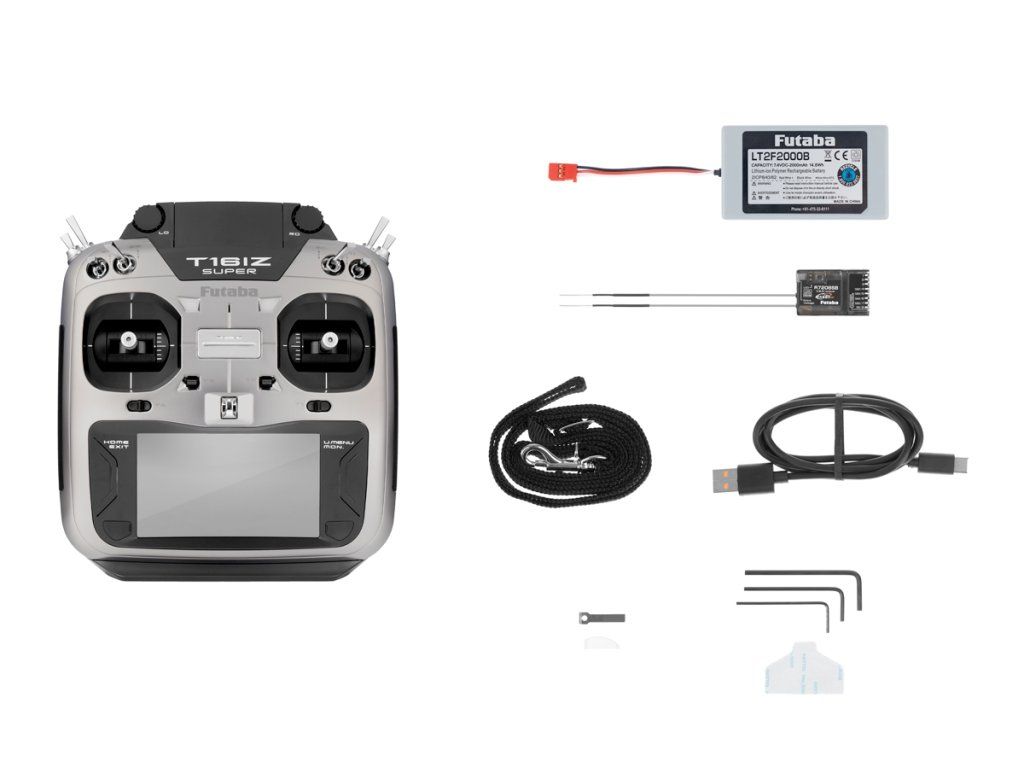 Vysílač T16IZ SUPER ve skříňce dokonale padnoucí do ruky je vybaven přesnými křížovými ovladači s nastavitelnou aretací/neutralizací, 8 přepínači, 2 posuvnými ovladači, 4 digitálními trimy a 2 otočnými proporcionálními ovladači. K programování slouží dvojice tlačítek a velký podsvícený barevný dotykový LCD displej zajišťující snadnou orientaci v intuitivním menu. T16IZ SUPER má paměť pro 30 modelů neomezeně rozšiřitelnou pomocí mikroSD karty a širokou škálu pokročilých mixových funkcí pro akrobatická letadla, větroně, vrtulníky a multikoptéry. Kromě zobrazení telemetrických dat na displeji je k dispozici hlasový výstup telemetrie v zásuvce pro sluchátko (není součástí soupravy). T16IZ SUPER je rovněž vybaven zásuvkou učitel-žák a zásuvkou pro programování a nastavování S.BUS serv a gyroskopických systémů CGY755/CGY760R nebo GYA553. USB datová zásuvka na horní straně vysílače možňuje používat T16IZ SUPER po připojení k PC USB kabelem jako ovladač pro RC simulátor bez potřeby dodatečného USB rozhraní.