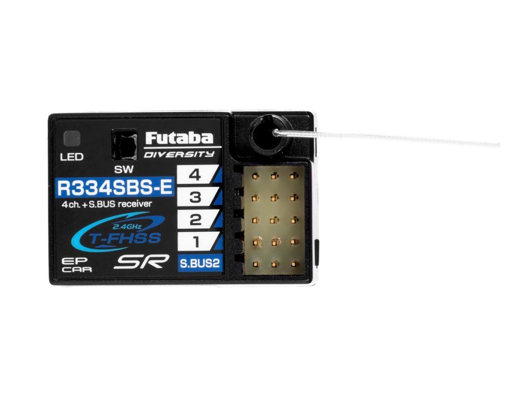 - Futaba R334SBS T-FHSS SR/T-FHSS 2.4GHz s telemetrií na sběrnici S.BUS2 (4kanálový)