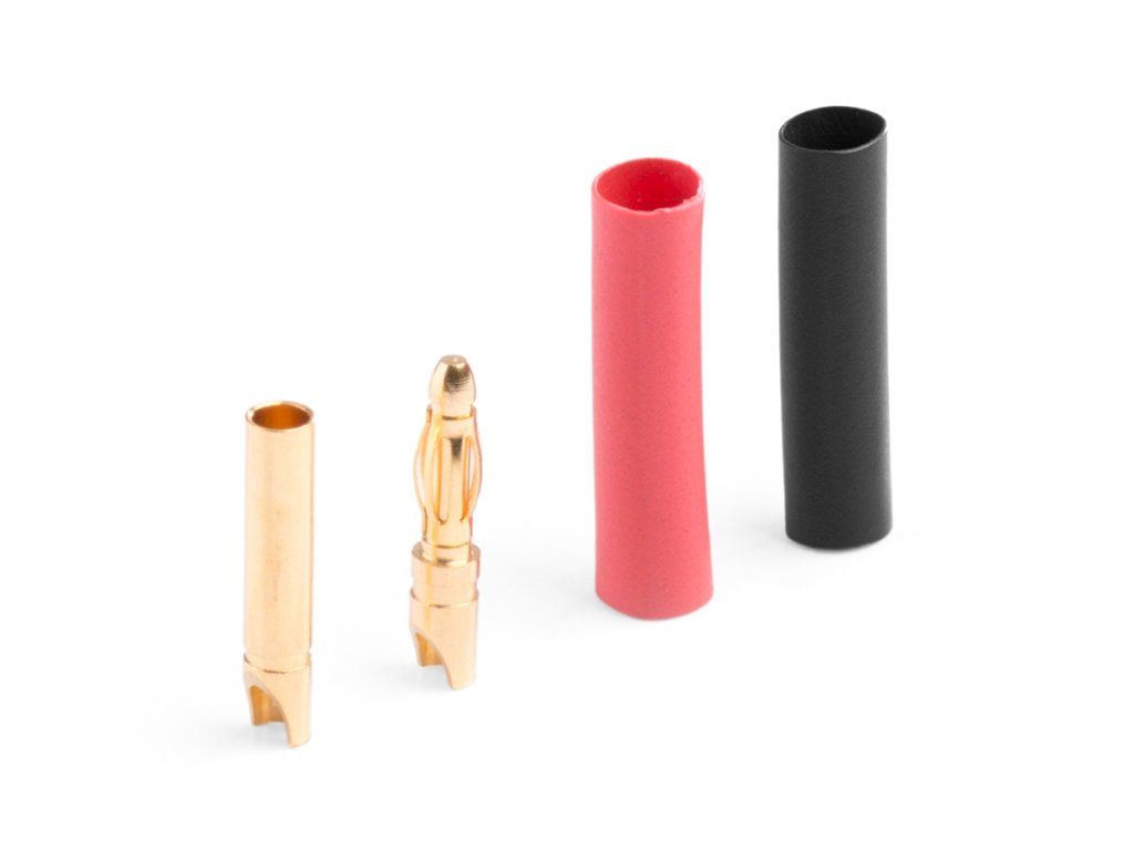 Silový zlacený konektor 2,0 mm s krátkým pružinovým kolíčkem se zatížitelností max. 30A (dlouhodobě 15A). Pro kabely o průřezu max. 0,8 mm2 (18AWG). Přechodový odpor 0,80 mOhm, max. 500 V. Balení 10 párů kolíček/dutinka se smršťovací bužírkou.Doplňkové parametry