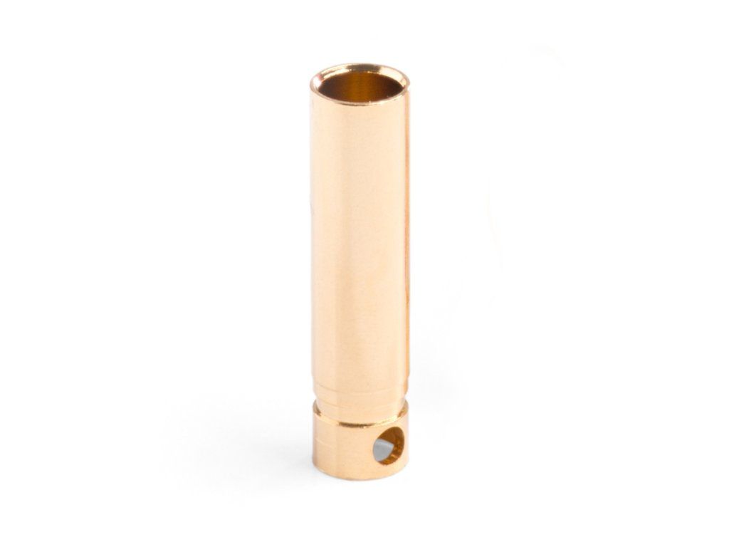 Silový zlacený konektor 4 mm s pružinovým kolíčkem se zatížitelností max. 70A (dlouhodobě 32A). Pro kabely o průřezu max. 2,6 mm2 (13AWG). Přechodový odpor 0,45 mOhm, max. 500 V. Balení 10 kusů Samic / Dutinek.Doplňkové parametry