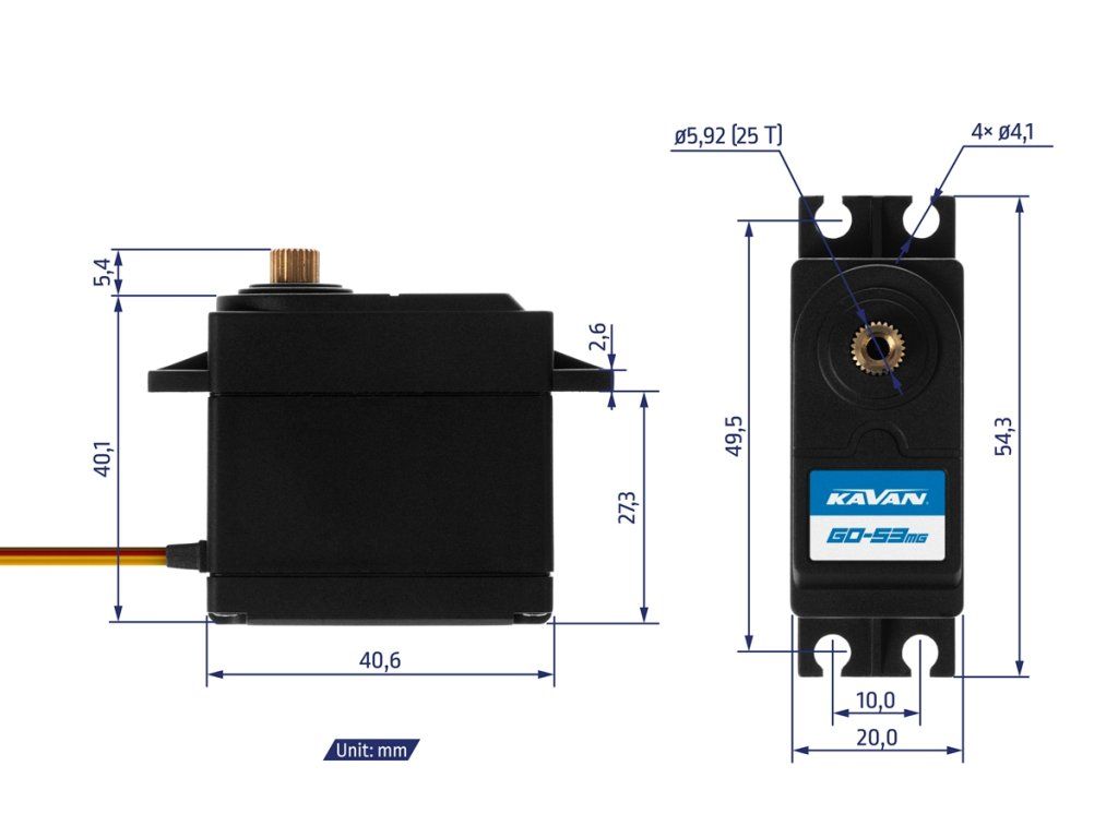 Silné standardní digitální servo s kovovými převody s výstupní hřídelí uloženou na dvou kuličkových ložiscích pro použití v RC modelech všech typů.