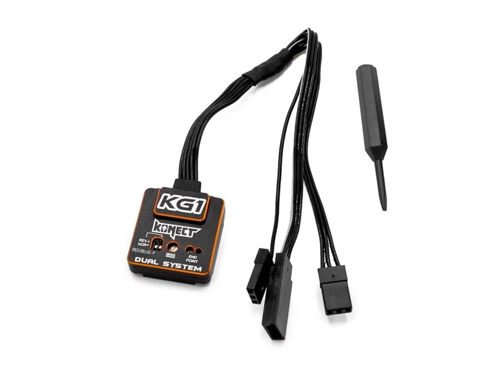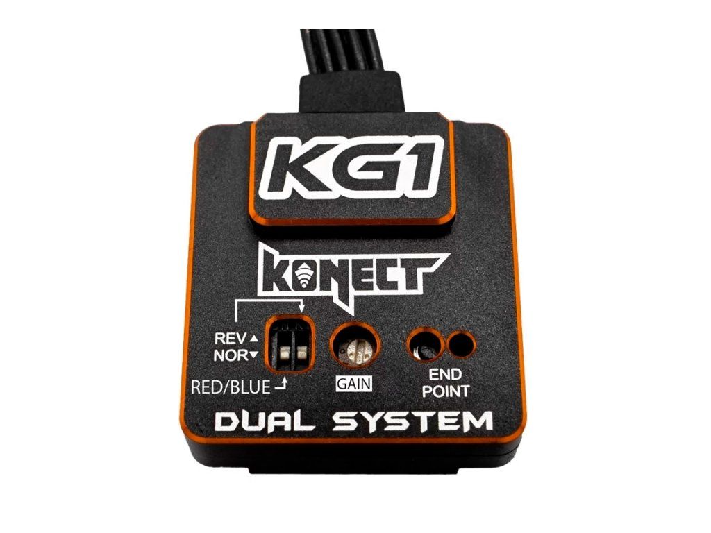 Toto gyro Konect je určeno pro RC driftování. Konect KG1 je dostatečně kompaktní, aby se snadno vešlo na podvozek, a velmi snadno se používá. Pomocí přepínače lze volit dva režimy řízení. Můžete měnit směr serva řízení a nastavovat zisk (z gyra nebo z vašeho tříkanálového vysílače). Nastavení koncových bodů je rychlé a snadné.