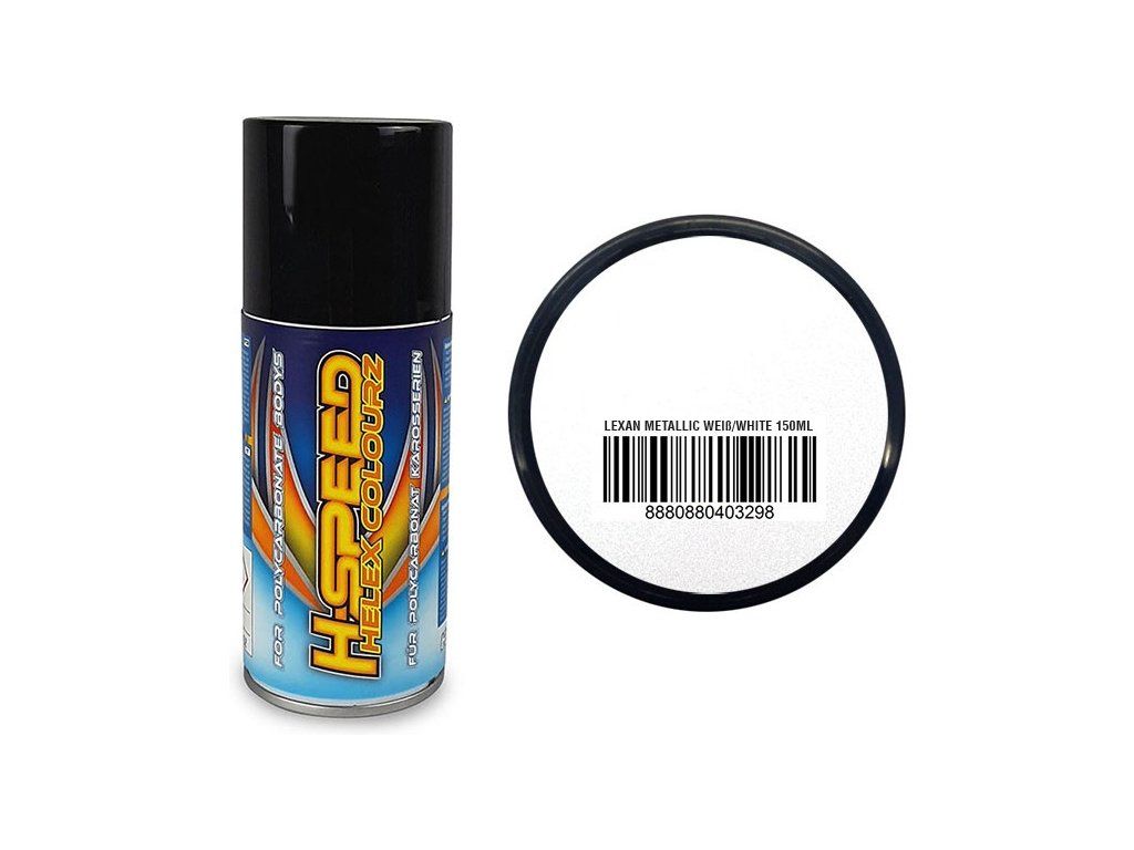 H-Speed metalická bílá akrylová barva ve spreji je vhodná pro širokou škálu materiálů včetně lexanových karosérií. Výhodou je krátká doba schnutí, výborné krytí a odolnost proti poškrábání. Obsah 150 ml.