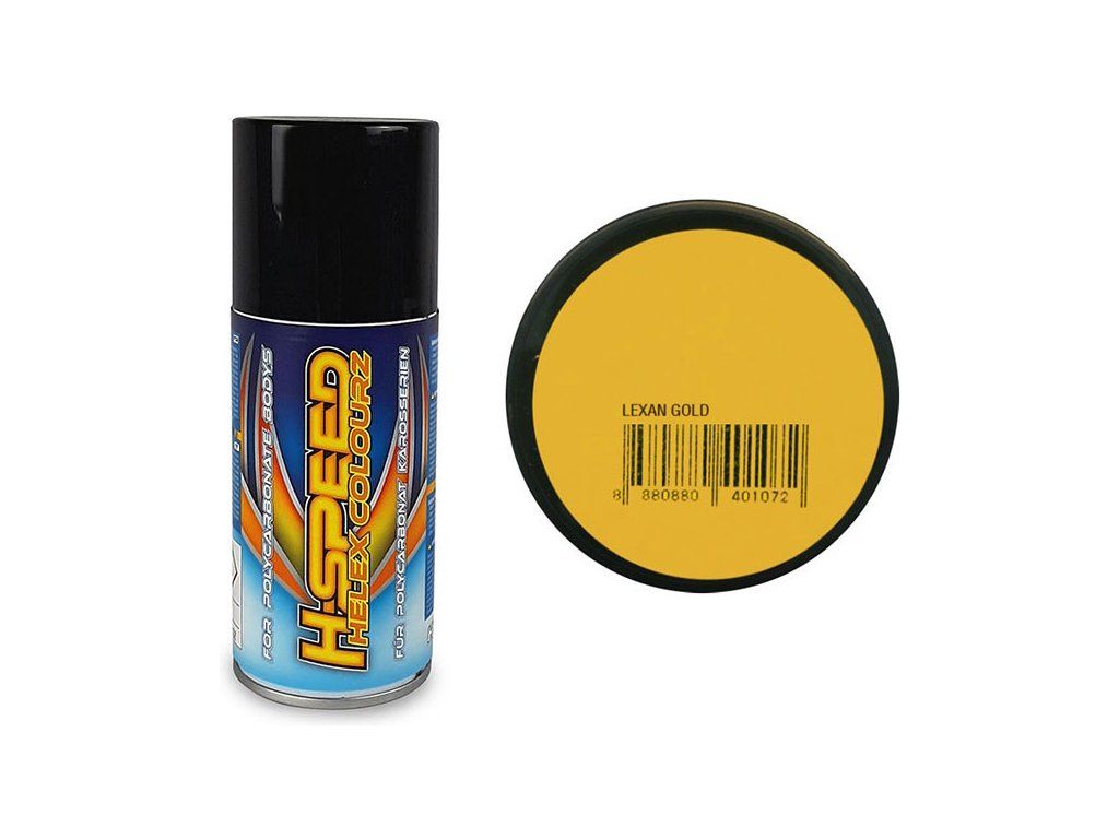 H-Speed zlatá akrylová barva ve spreji je vhodná pro širokou škálu materiálů včetně lexanových karosérií. Výhodou je krátká doba schnutí, výborné krytí a odolnost proti poškrábání. Obsah 150 ml.