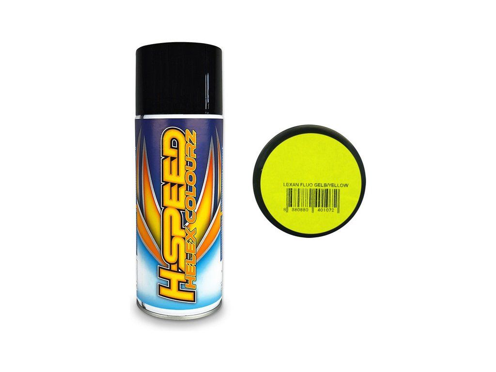 H-Speed žlutá akrylová barva ve spreji je vhodná pro širokou škálu materiálů včetně lexanových karosérií. Výhodou je krátká doba schnutí, výborné krytí a odolnost proti poškrábání. Obsah 400 ml.