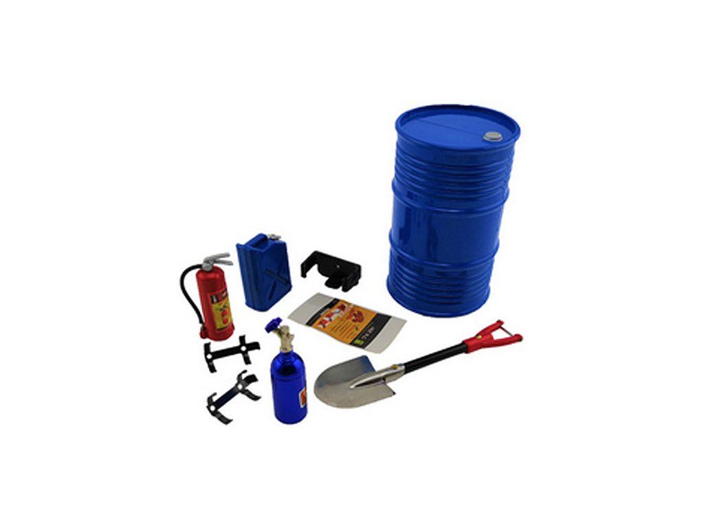 H-Speed Vám nabízí detailně zpracovanou sadu maket - velký sud na olej, plynová láhev, hasicí přístroj, lopata, štítek pro RC modely aut. Měřítko 1:10