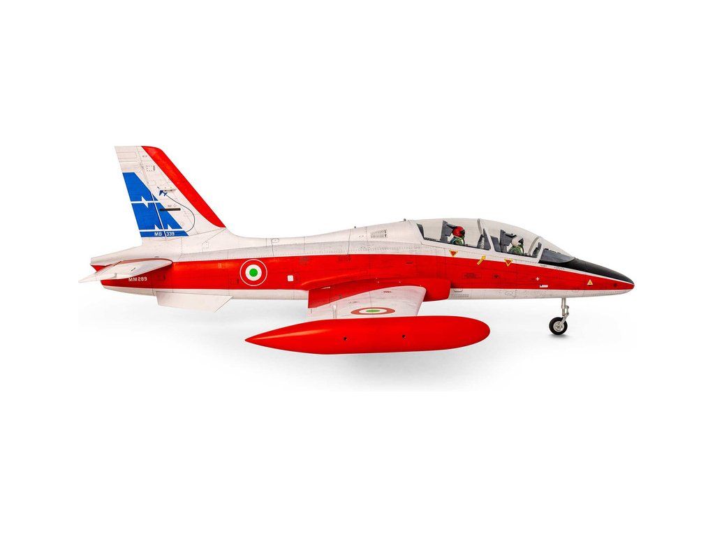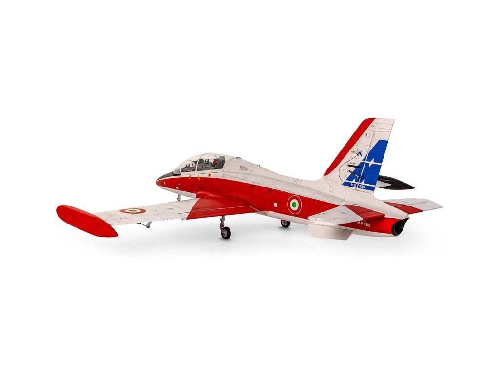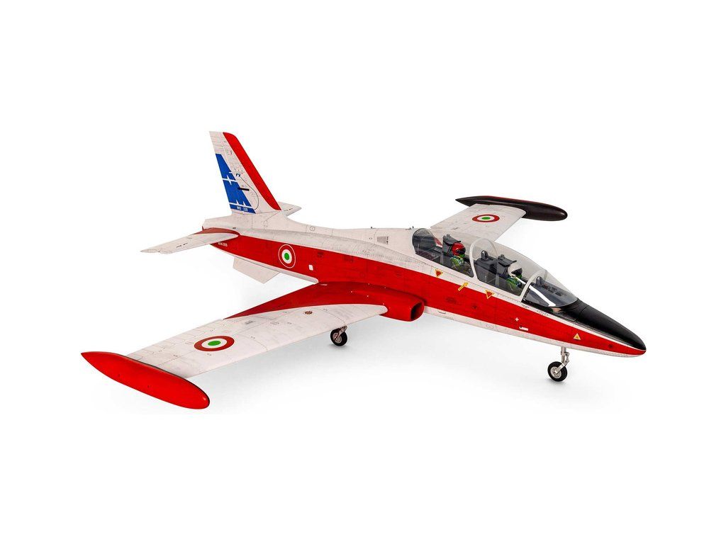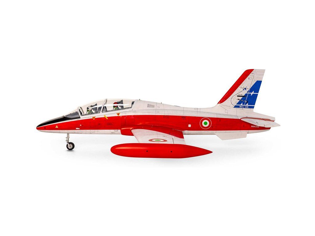 RC model letadla od Hangar 9®: MB-339 Aermacchi Military Turbine ARF o rozpětí 2.1 m, na spalovací turbínu řady 60-86N. Atraktivní, snadno ovladatelná a plně akrobatická polomaketa. Celodřevěná konstrukce s výztuhami z uhlíku, hotové zbarvení, elektrický zatahovací podvozek je součástí balení.