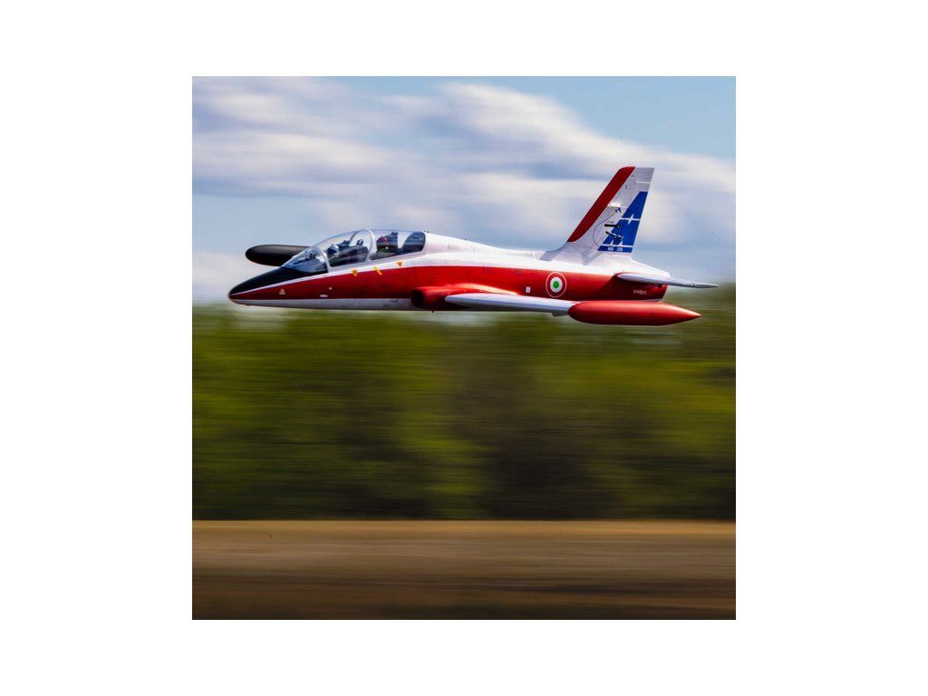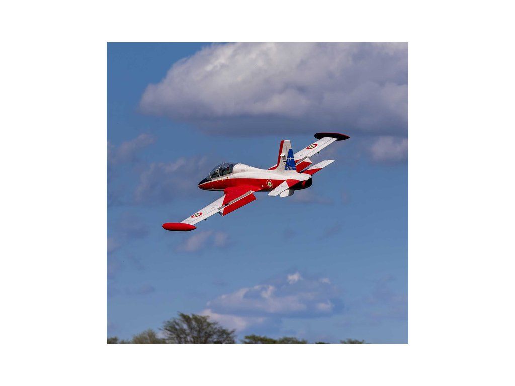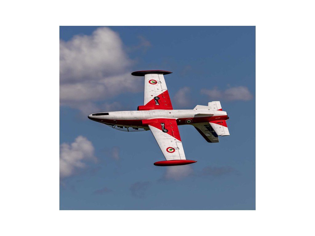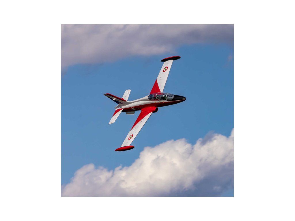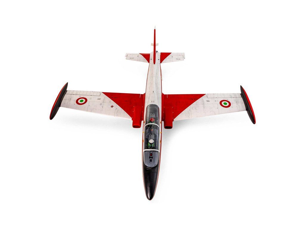 RC model letadla od Hangar 9®: MB-339 Aermacchi Military Turbine ARF o rozpětí 2.1 m, na spalovací turbínu řady 60-86N. Atraktivní, snadno ovladatelná a plně akrobatická polomaketa. Celodřevěná konstrukce s výztuhami z uhlíku, hotové zbarvení, elektrický zatahovací podvozek je součástí balení.