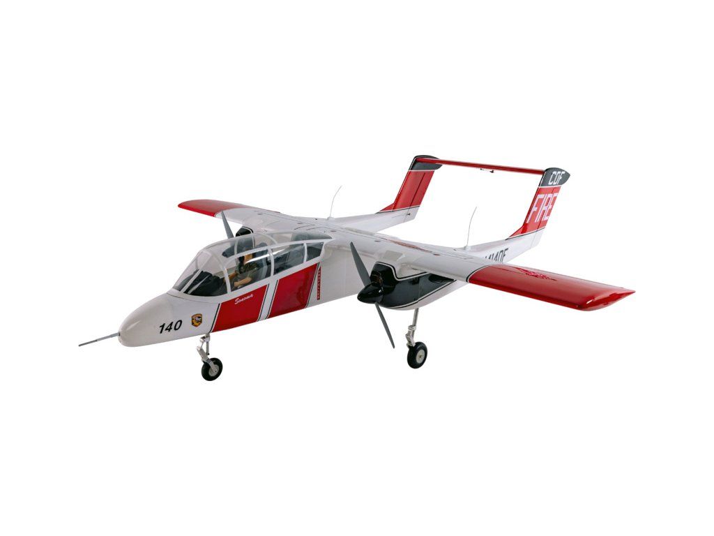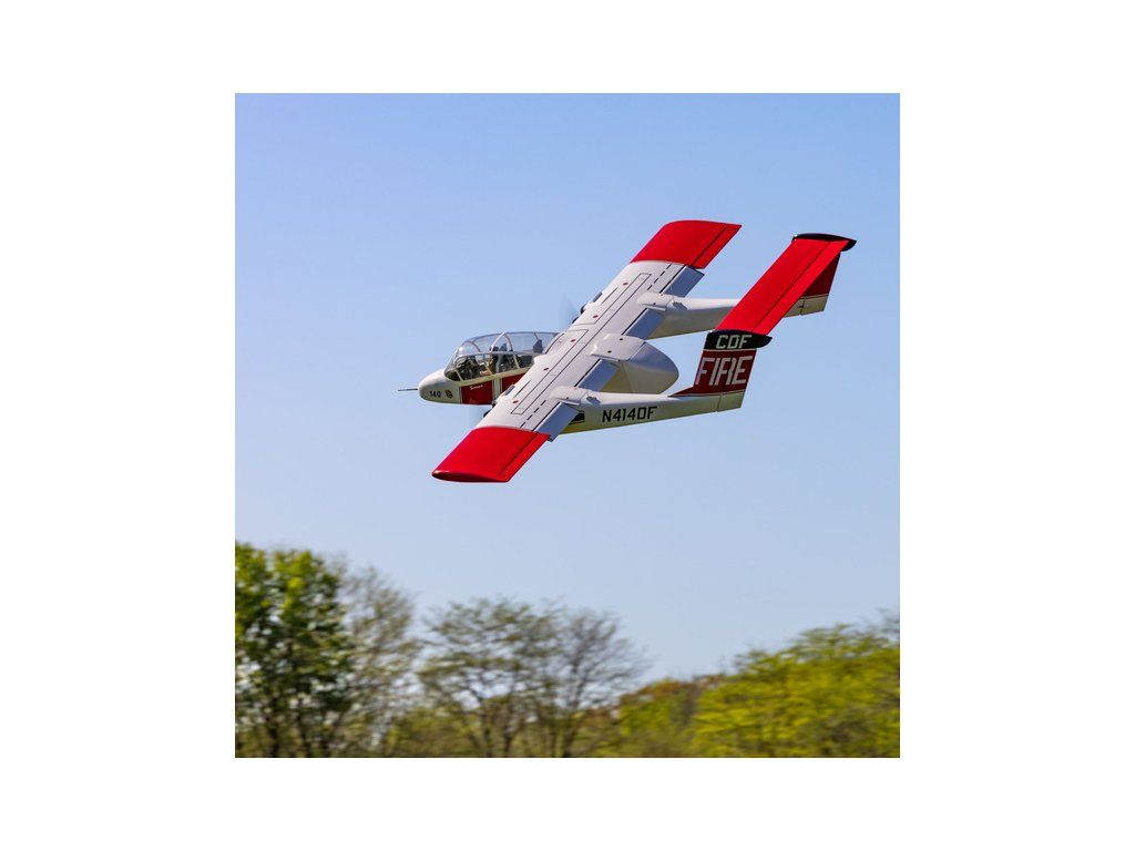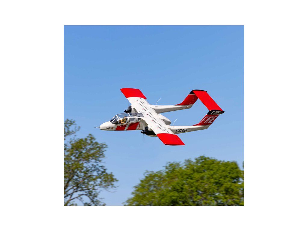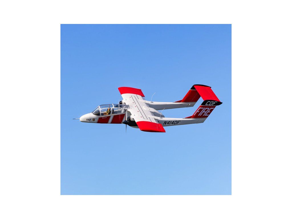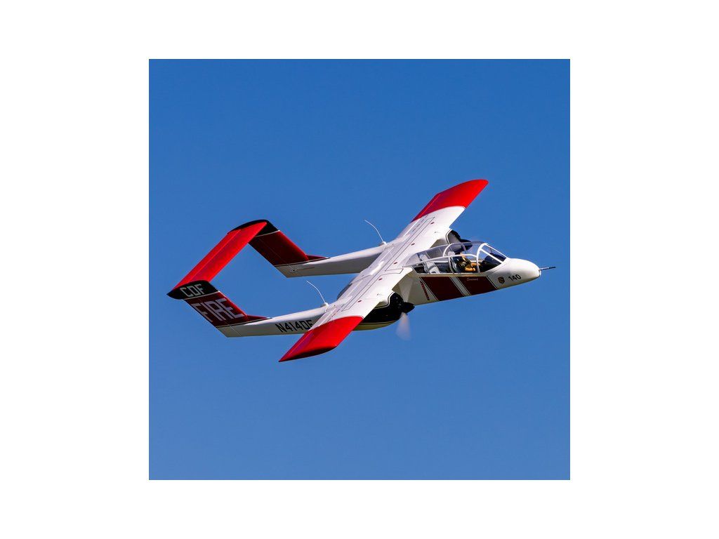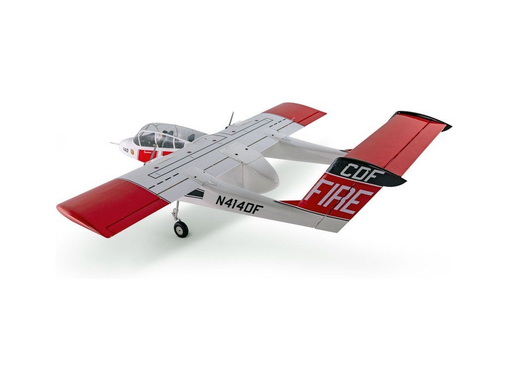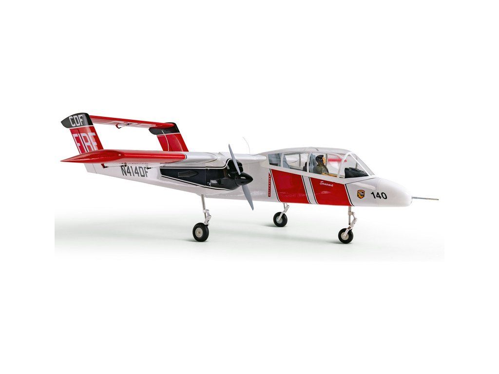 RC model letounu North American-Rockwell OV-10 Bronco o rozpětí 2,1m má lehkou ale pevnou dřevěnou konstrukci, potah fólií ve zbarvení požární ochrany CAL FIRE. V balení je elektrický odpružený zatahovací podvozek. Doporučeny jsou buď spalovací motory 20cc nebo ekvivalentní elektropohon.