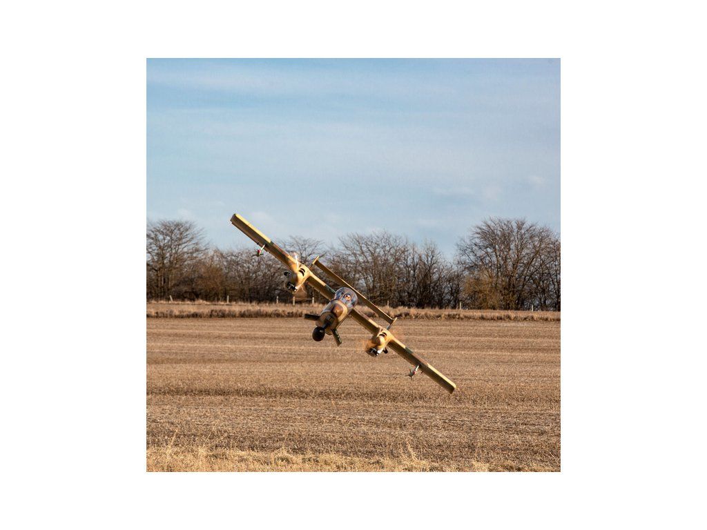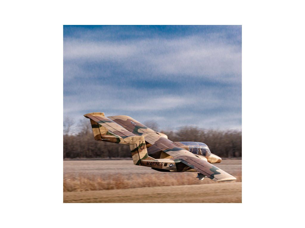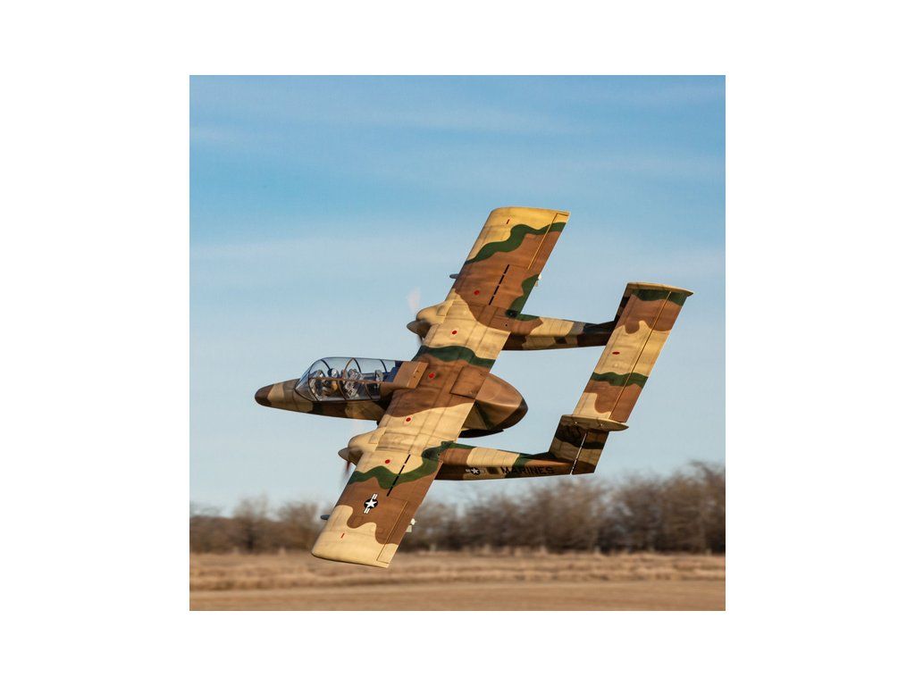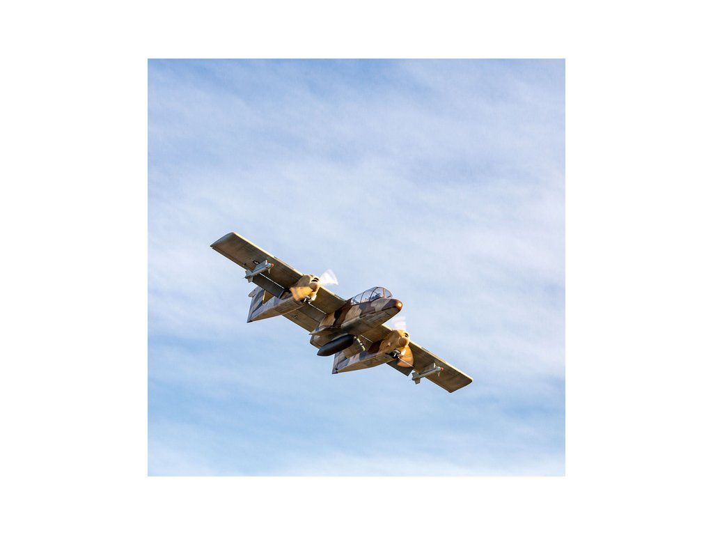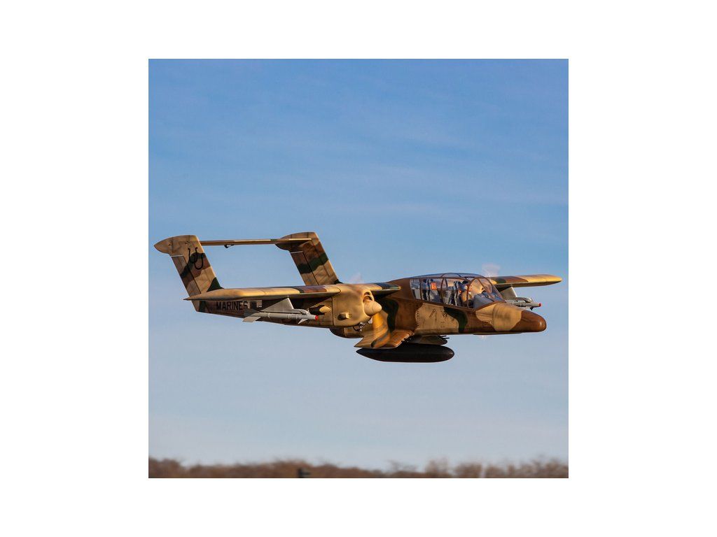 Obří dvoumotorová RC maketa vojenského letadla OV-10 Bronco má rozpětí více než 2,7 m, kompletní povrchovou úpravu, kabinu s kokpitem a makety zbraní. K pohonu lze zvolit jak spalovací motory 30-35 ccm, tak elektromotory. V balení je kompletní zatahovací podvozek.