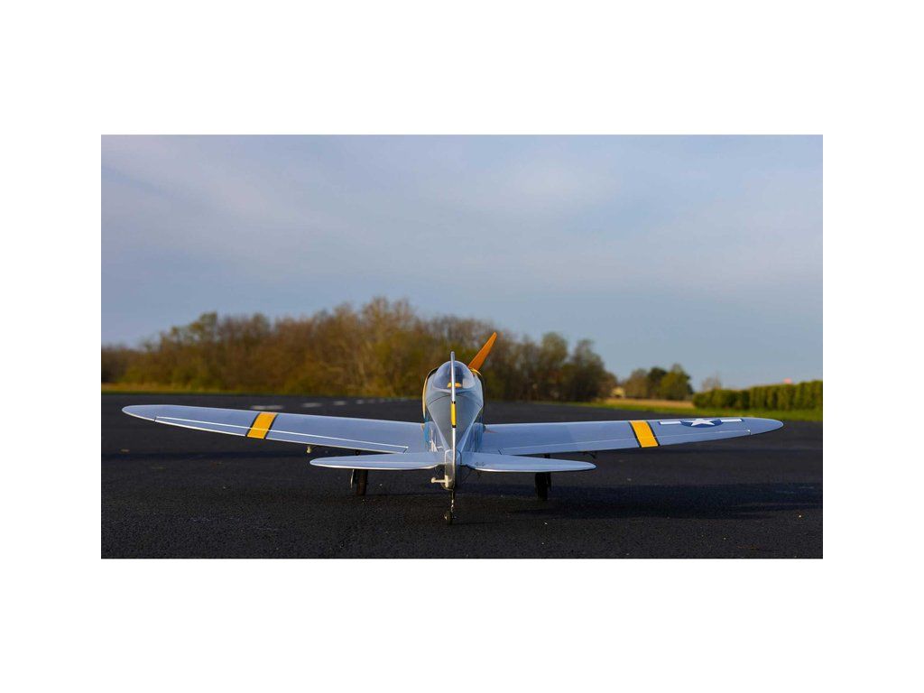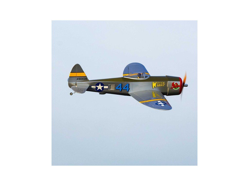 RC model warbirdu od Hangar 9, letadlo P-47 Thunderbolt o rozpětí 1.5 m ve verzi PNP s nainstalovaným motorem, regulátorem, servy, vrtulí a zatahovacím podvozkem. Celodřevěná konstrukce, potah Ultracote, stačí nainstalovat pouze váš přijímač a baterií!