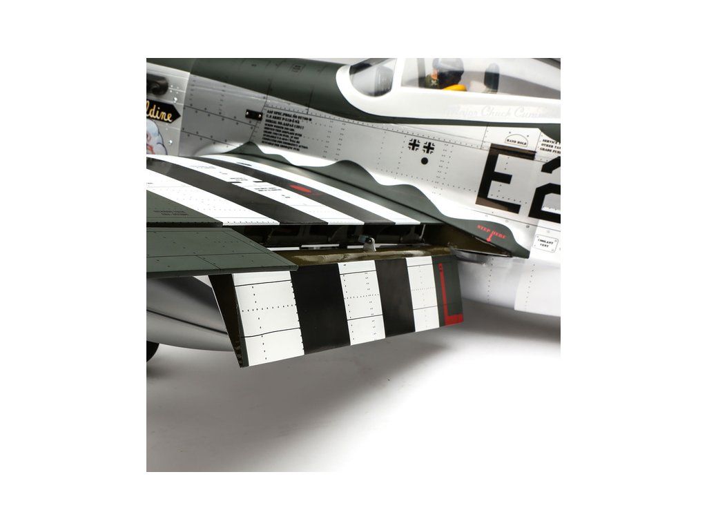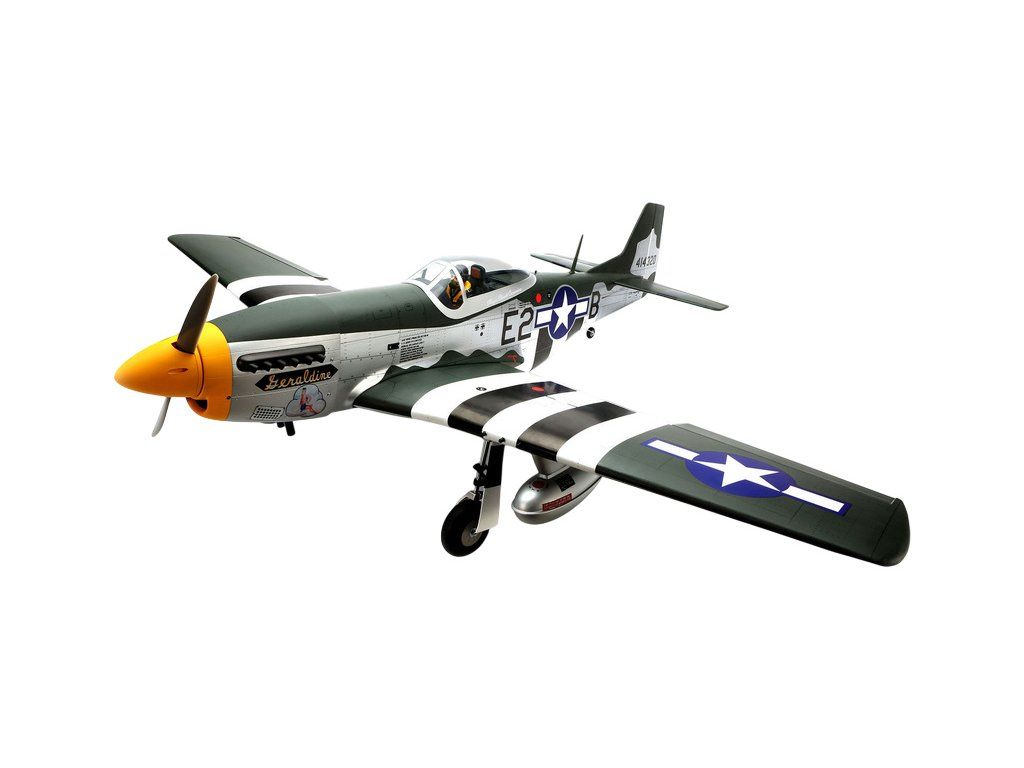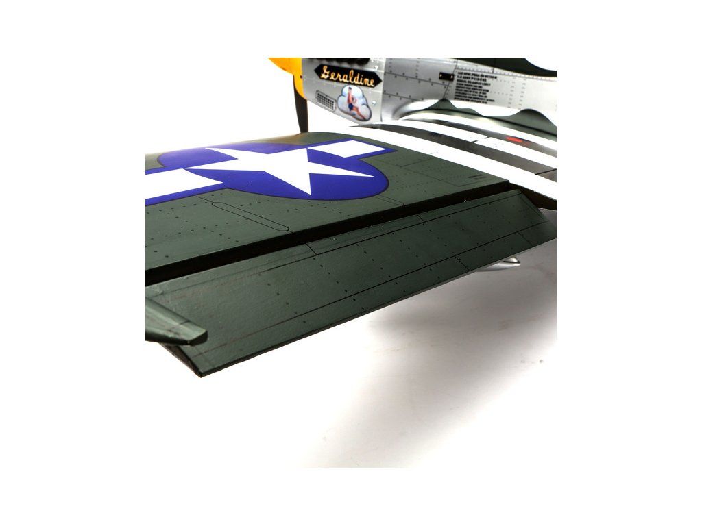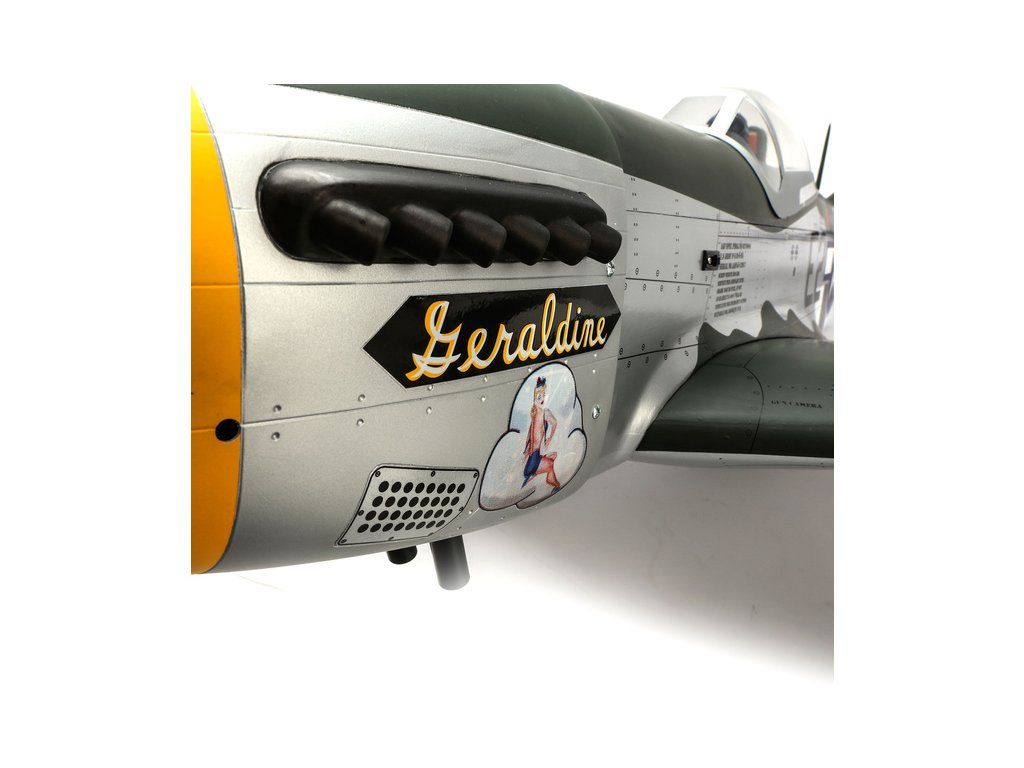 RC model americké stíhačky P-51D Mustang o rozpětí křídel 1.8 m v měřítku 1:6. Nejznámější doprovodný stíhač amerických létajících pevností je vyroben s důrazem na co nejvěrnější detaily, kamufláž je podle letounů 375.nebo 361. stíhací squadrony. Model pro spalovací motor 20cc nebo elektromotor.