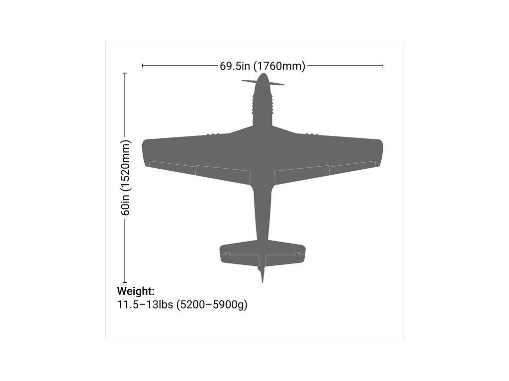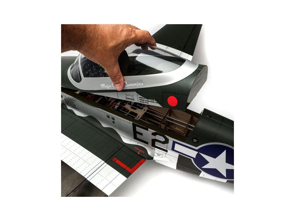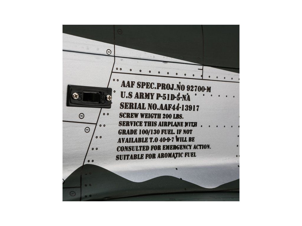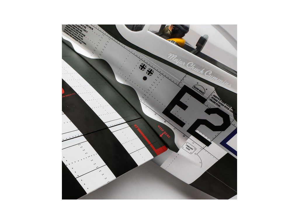 RC model americké stíhačky P-51D Mustang o rozpětí křídel 1.8 m v měřítku 1:6. Nejznámější doprovodný stíhač amerických létajících pevností je vyroben s důrazem na co nejvěrnější detaily, kamufláž je podle letounů 375.nebo 361. stíhací squadrony. Model pro spalovací motor 20cc nebo elektromotor.
