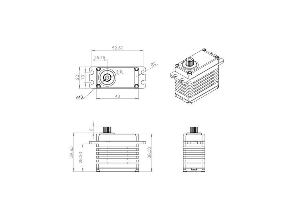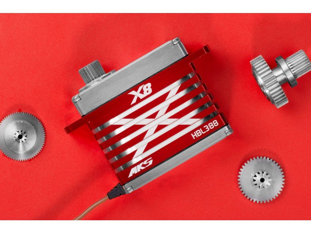Ultra silné programovatelné digitální standardní servo se střídavým motorem, s titanovými převody a výstupní hřídelí uloženou na dvou kuličkových ložiscích pro obří modely letadel. Pro dokonalé chlazení i při velmi vysokém zatížení je servo uloženo v hliníkové krabičce se žebrovanou střední částí.
