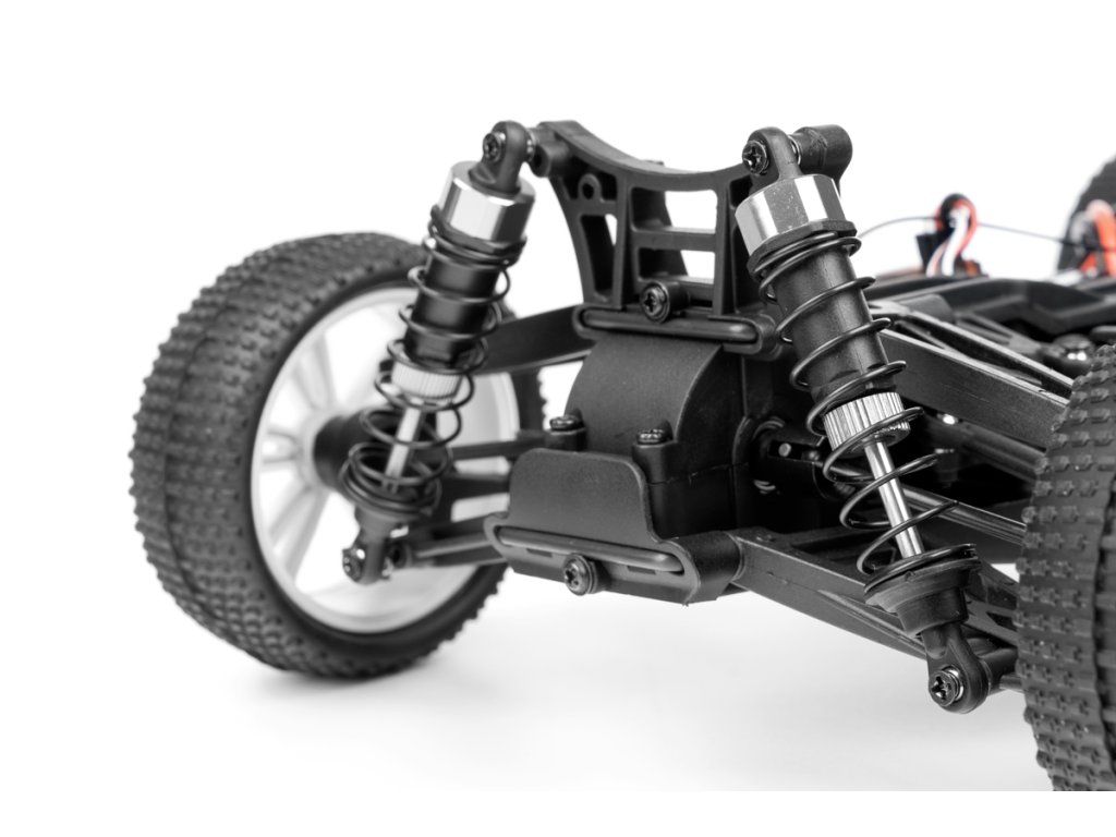 Podvozek má nezávislé zavěšení kol a horní ramena i spojovačky řízení jsou vybaveny spojovačkami s šestihranem a pravo/levým závitem pro snadné nastavení a seřízení geometrie podvozku. Jistotu a stabilitu při jízdě modelu dodávají olejové tlumiče.