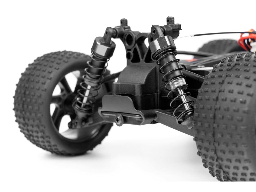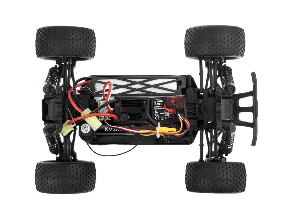 Konstrukce je převážně plastová, k pohonu je použit střídavý motor velikosti "380", který přes stálý převod pohání všechna čtyři kola (4WD). Palubní část RC soupravy sestává z 2,4Ghz přijímače, obousměrného regulátoru otáček a serva řízení. Podvozek konstrukčně vychází z větších modelů, takže se může pochlubit nezávislým zavěšením kol, olejovými tlumiči apod. K ovládání je použita RC souprava pracující v pásmu 2,4Ghz.