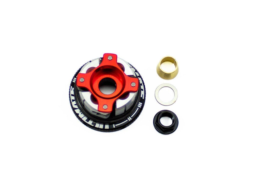 Hliníková spojka COMPAK 4 PRO B10 pro off-road modely 1/8, čtyřčelisťová nastavitelná spojka, která nově definuje koncept nastavitelných spojek tím, že na trh uvádí jedinečný systém nastavení tuhosti spojky při namontovaném motoru a plně připraveném autě k jízdě.