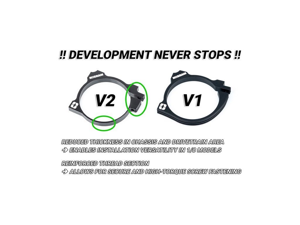 - Menší tloušťka v oblasti podvozku a hnacího ústrojí - Umožňuje univerzálnější instalaci v modelech 1/8.