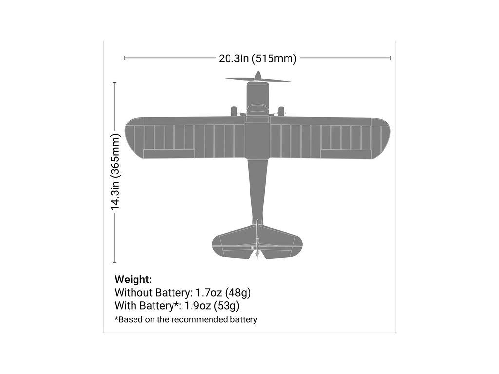 K uvedení modelu do provozu potřebujete vysílač Spektrum 4+ kanálový DSM2/DSMX, pohonnou LiPo baterii 1S 150-210mAh s konektorem JST PH 1.25 a kompatibilní nabíječ.