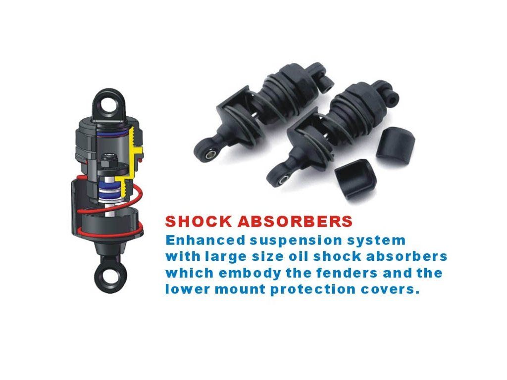 Odolné zavěšení je doplněno nastavitelnými olejovými tlumiči, které modelu poskytují vynikající ovládání a tlumení nerovností. Kola a pneumatiky jsou navrženy pro maximální zátěž. Díky vysoce přilnavé směsi dodávají excelentní trakci na jakémkoliv povrchu.