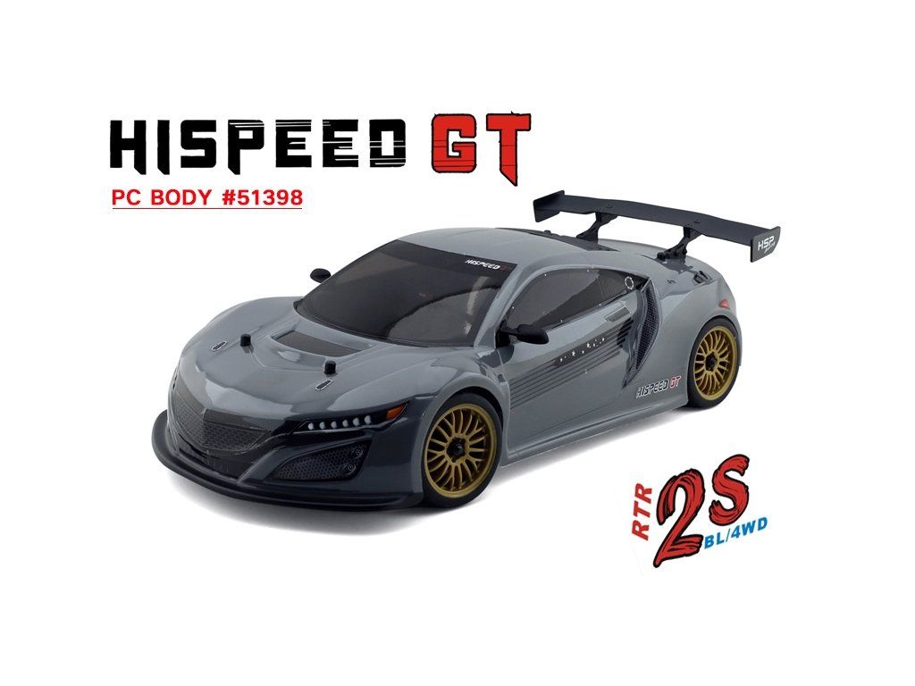 HSP GT je výkonné RC silniční auto v měřítku 1/10 navržené pro vysokou rychlost a jízdu smykem.