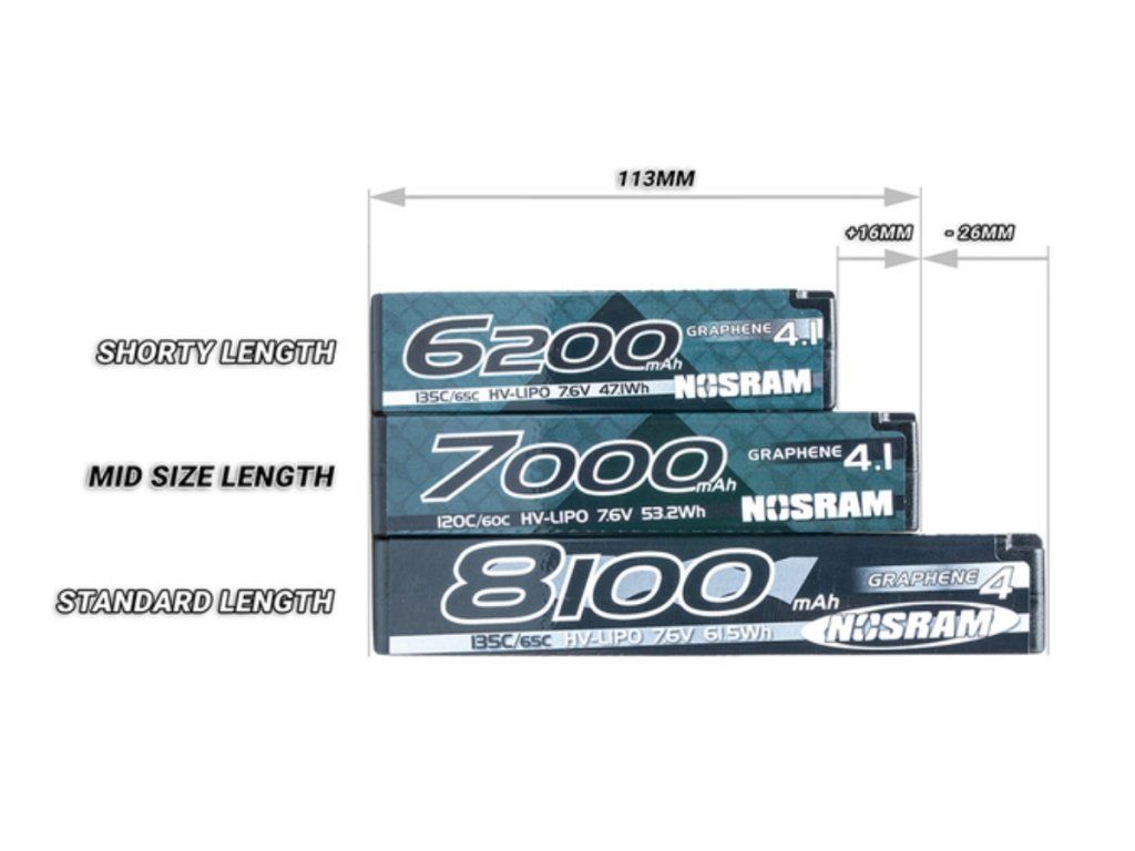 Tato nová velikost prodlužuje baterii o 16 mm oproti délce akumulátoru Shorty 97 mm a činí ji o 26 mm kratší než standardní délka akumulátoru 139 mm.