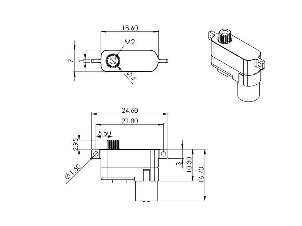 Velmi silné a velmi rychlé programovatelné digitální mikroservo s titanovými převody s výstupní hřídelí uloženou v kluzném pouzdře. Díky přesným předepjatým převodům s minimálními vůlemi a ploché krabičce s výškou 7 mm je zvláště vhodné pro ovládání křidélek a klapek v RC házedlech F3K, malých větroních a motorových modelech s tenkými profily křídla, jako jsou F5D modely pro závody okolo pylonů. Pro dokonalé chlazení i při vysokém zatížení je servo uloženo v hliníkové krabičce s patkami pro montáž na plocho.