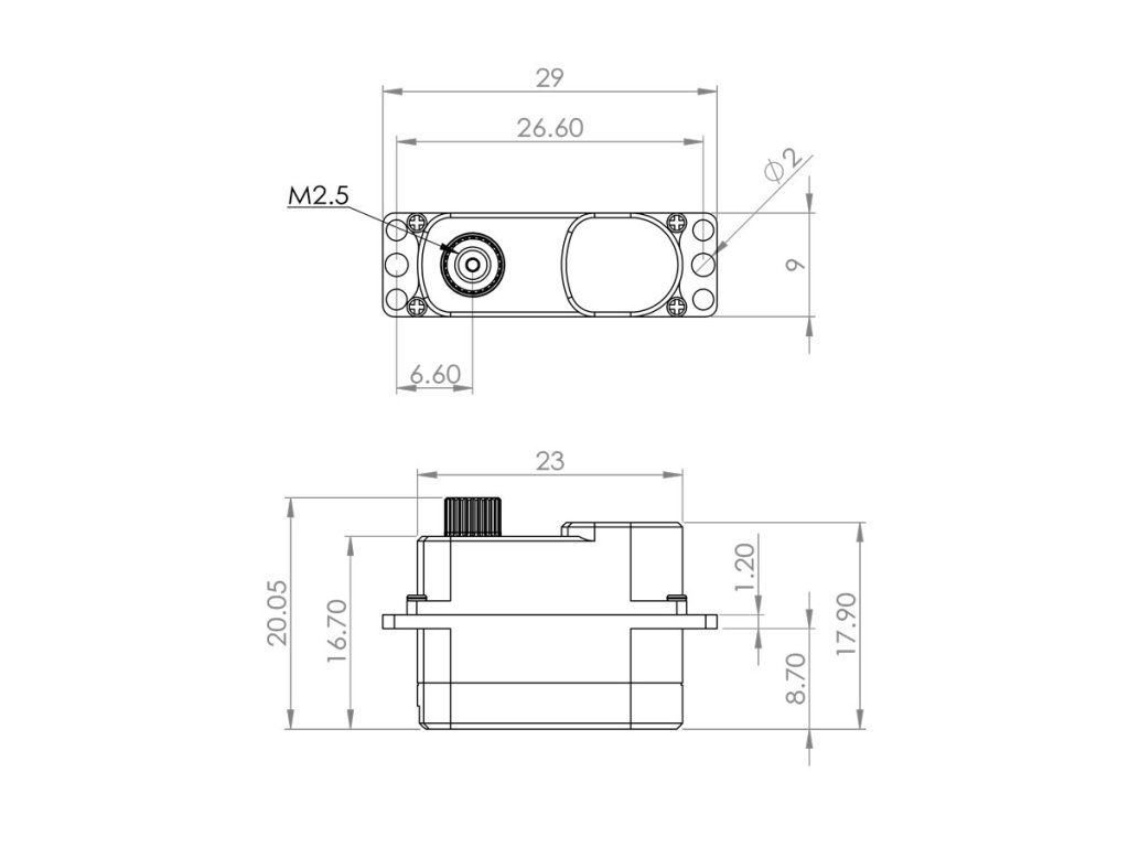 Velmi silné a rychlé programovatelné tenké digitální mikroservo s titanovými převody uloženými na jednom kuličkovém, jednom samomazném a dvou jehlových ložiscích. Díky přesným předepjatým převodům s minimálními vůlemi a ploché krabičce s výškou 9 mm je zvláště vhodné pro ovládání křidélek a klapek v RC házedlech F3K, malých větroních a motorových modelech s tenkými profily křídla, jako jsou F5D modely pro závody okolo pylonů. Pro dokonalé chlazení i při vysokém zatížení je servo uloženo v hliníkové krabičce bez patek.